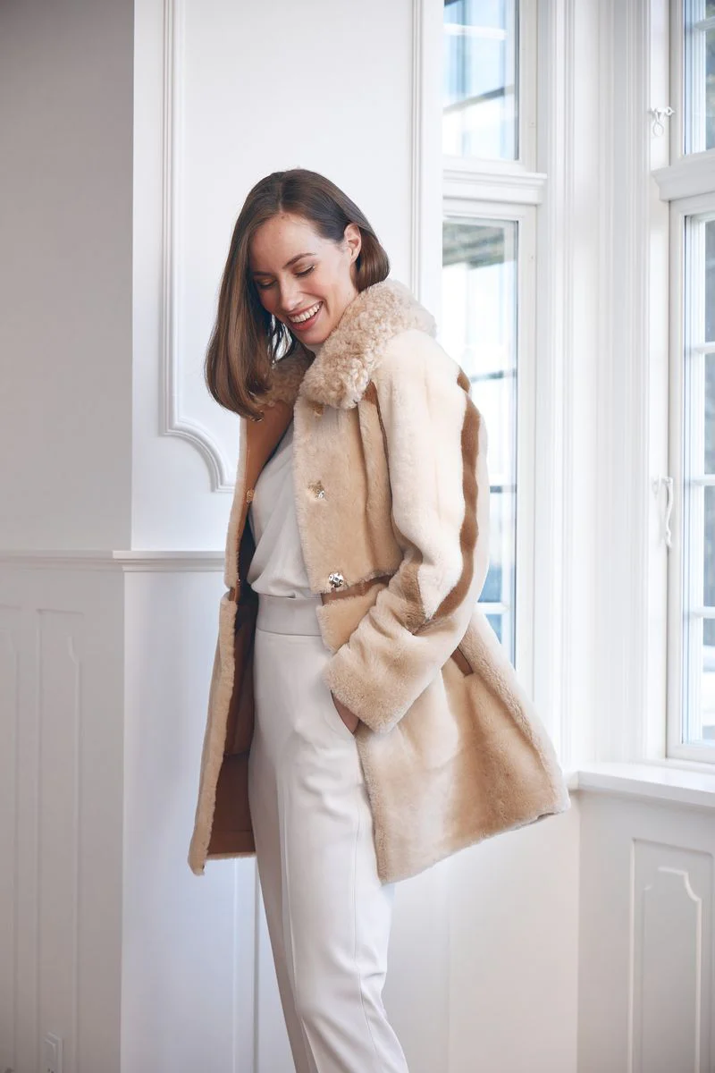 Unsere wunderschöne Jacke Anika ist einfach umwerfend. Die Jacke ist voller Details in dem wunderschönen Doubleface Schaffell, das auf der einen Seite eine sehr weiche Fellseite und auf der anderen Seite die weiche Wolle hat. Doubleface Schaffell ist bekannt für die sehr hohe Qualität und die einzigartige Weichheit.