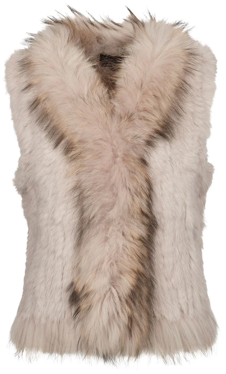 Unsere gestrickte Pelzweste Anna ist wahrlich etwas ganz Besonderes. Sie ist aus echtem Kaninchen gefertigt, was man in dem weichen Fell spüren kann. Außerdem hat sie einen Kragen aus Waschbärfell, der der Weste einen exklusiven und luxuriösen Look verleiht.