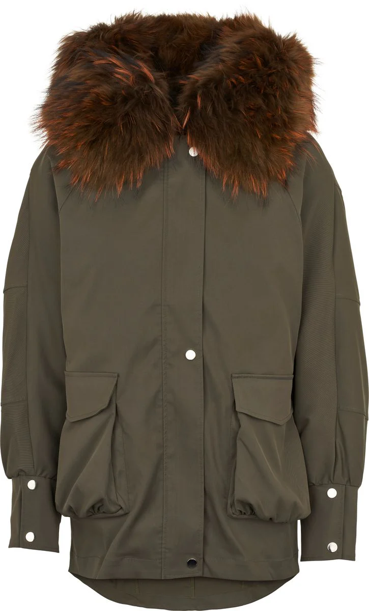 Augusta ist einer unserer beliebtesten und sehr bequemen Echtpelz Parkas. Es ist ein Echtpelz Parka mit Futter aus Kaninchenfell, das per Reißverschluss herausgenommen werden kann, wenn Sie die Jacke für eine andere Jahreszeit als den Winter benötigen. Es ist ein Parka mit einer Kapuze aus echtem Pelz, wo Sie das weiche und schöne Waschbärfell finden, das Sie warm um den Hals hält. Geschlossen wird die Jacke mit einem Reißverschluss und Druckknöpfen.
