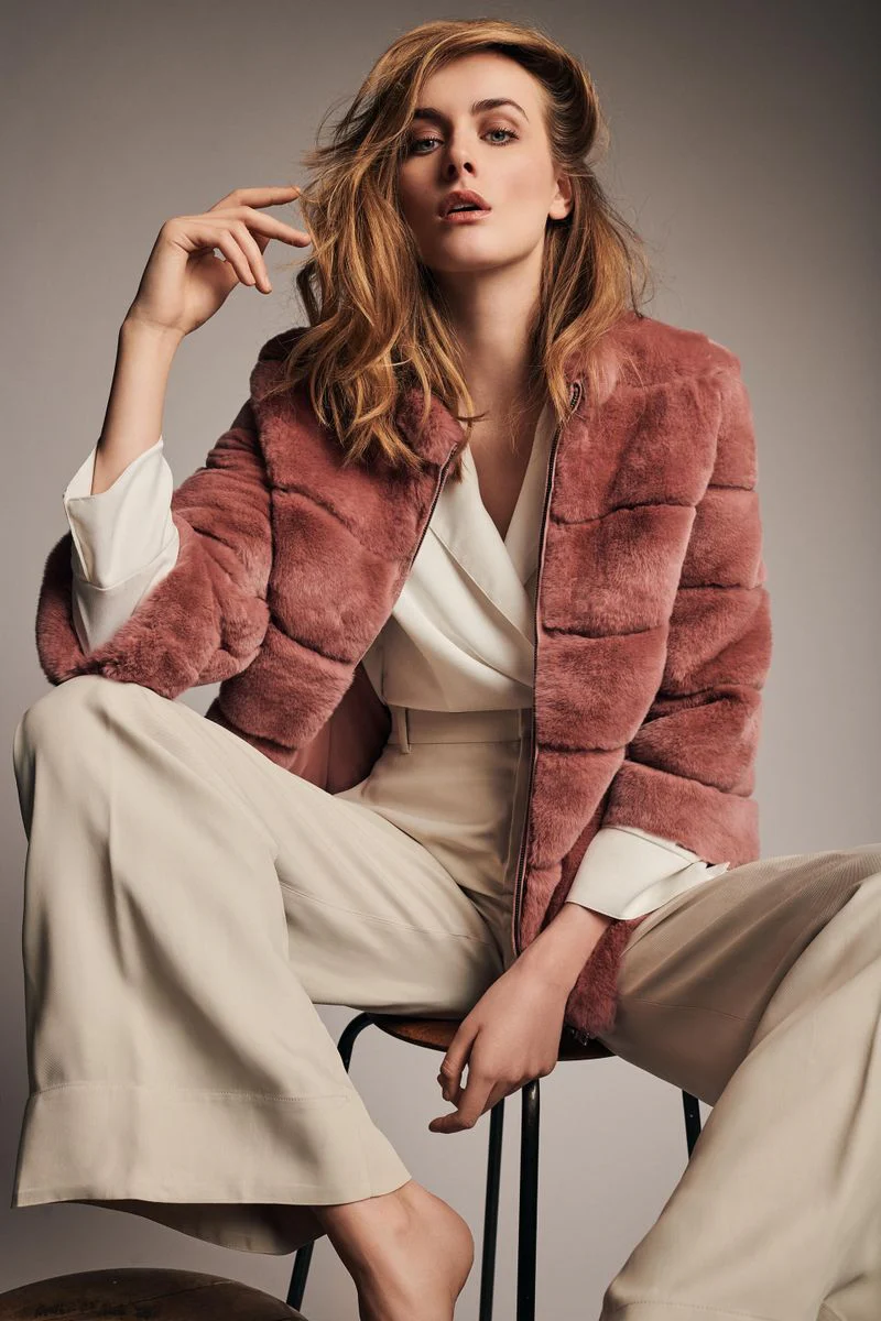 Ava ist eine schicke, kurze Jacke aus Kaninchen-Rex-Fell, das als sehr weich bekannt ist. Die Jacke ist kurz, und die Ärmel sind kurz und weit. Die Außenseite des Mantels hat eine Quernaht, die das Fell besser zur Geltung bringt. Die Jacke wird mit einem Reißverschluss geschlossen und ist in den Farben Silver Grey, Simple Taupe, Whisper Pink, Cherry Blossom, Antique Green, Midnight Blue und Black erhältlich.