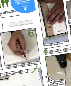 Holz und Schrauben sind Standardteile, die du in jedem größeren Baumarkt bekommst. Hier kannst unsere Holzlasur Kunterbunt, Pinsel und Polierpad kaufen.