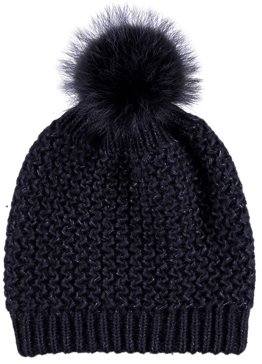 Beate Mütze | Gestrickte Merinowolle | Waschbärfell