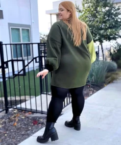 Mit einer Peace-grünen Grundfarbe und kontrastierenden schwarzen Details ist dieses Longline-Jumper-Kleid ein echtes Statement-Piece, das Komfort mit atemberaubendem Design verbindet. Der lockere Garneffekt an den T-Rex-Zähnen verleiht eine 3D-Optik für extra Biss (und keine Sorge, wenn das nicht Ihr Ding ist – die Zähne lassen sich einfach entfernen, ohne das Kleid zu beschädigen). Das Whipstitch-Detail an den Ballonärmeln ist super süß und rundet das Design perfekt ab, während der V-Ausschnitt für ultimativen Komfort sorgt.