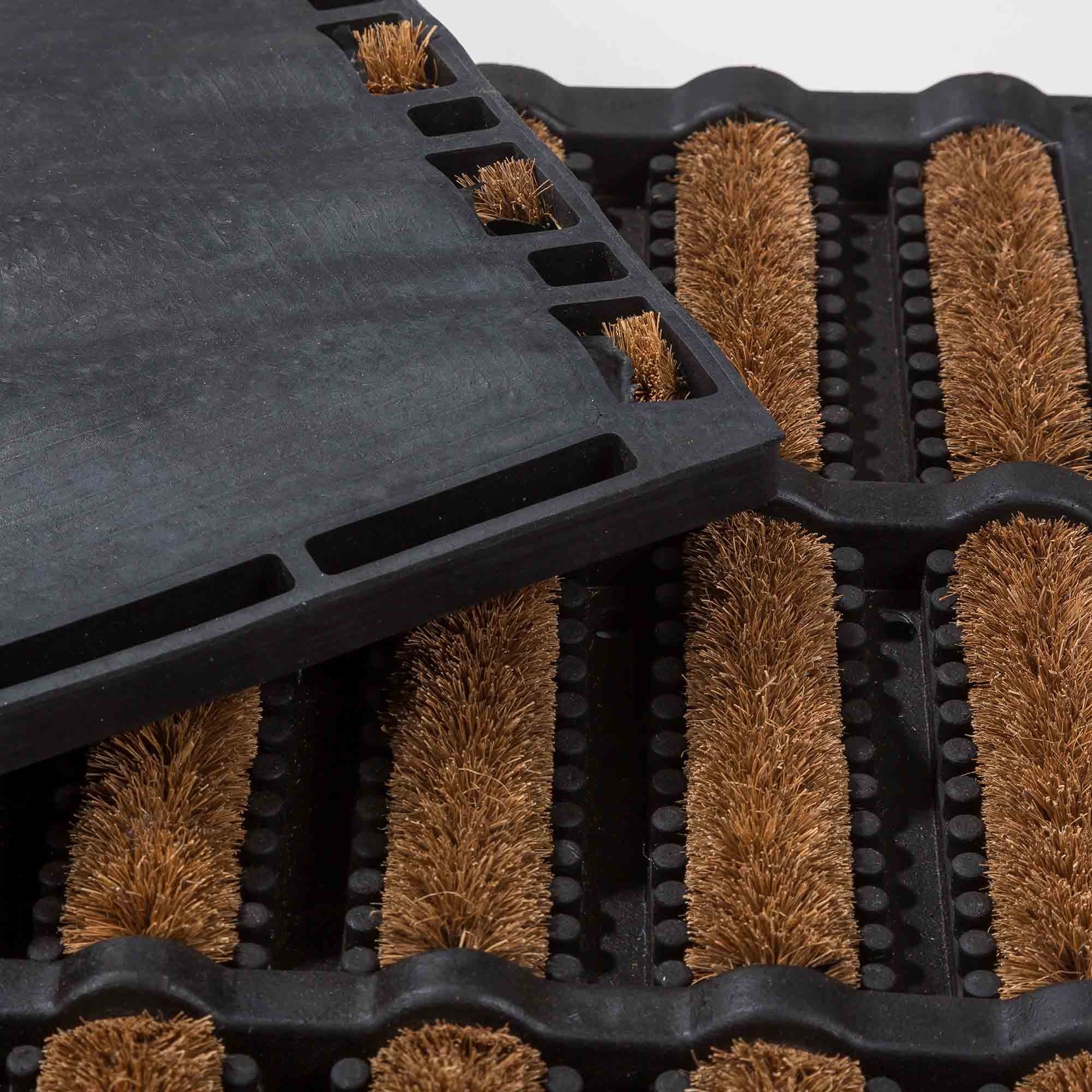 Die Rimini Fußmatte überzeugt mit ihren robusten Kokosbürsten, die selbst hartnäckigen und groben Schmutz effektiv von den Schuhen abstreifen. Die zwischenliegenden Gumminoppen fangen den Schmutz zuverlässig auf, sodass dieser unkompliziert ausgeschüttelt werden kann und eine einfache Reinigung gewährleistet ist.