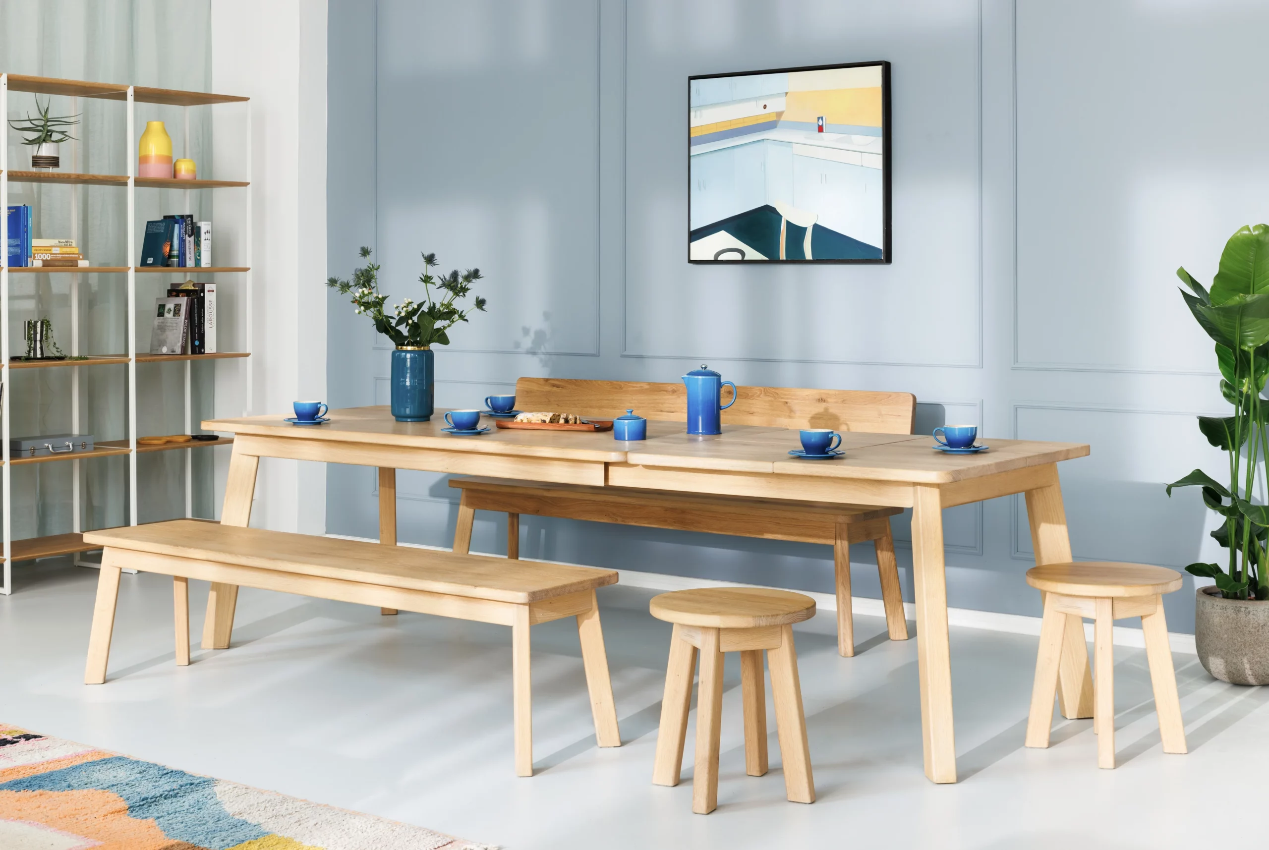Alle Kanten werden abgerundet und die Beine sind leicht nach innen gekippt. Wähle deinen bevorzugten Kantenschliff und Ölung.