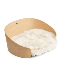 Das robuste Lammfell und die edlen Holzarten sorgen nicht nur für einen stilvollen Look, sondern auch für langlebige Qualität. Ihr Haustier wird diesen gemütlichen Rückzugsort lieben, der perfekt in Ihr Zuhause passt und Eleganz mit Gemütlichkeit verbindet.