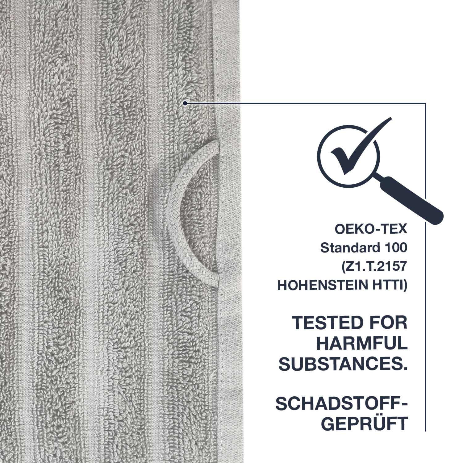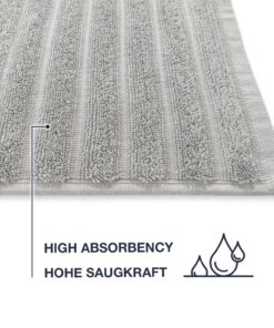 Die Badetücher »Jessica« von WohnDirect, besticht durch attraktive Strukturstreifen als Bordüre und stellt bereits bei der Herstellung klar, dass der Kuschelfaktor an erster Stelle steht. So sind die Badtücher aus 100% Baumwolle gefertigt. Das sorgt für ein weiches wie angenehmes Tragegefühl und hilft außerdem dabei, dass der Stoff eine gute Feuchtigkeitsaufnahme gewährleistet. Und das ist besonders wichtig, denn nach dem Duschvorgang soll das Wasser zuverlässig und schnell aufgesogen werden, ohne es wieder direkt abzugeben. Hinzu kommt die pflegeleichte Handhabung: Die Tücher sind bei bis zu 60 °C maschinenwaschbar und auch noch trocknergeeignet. Mit den Badetüchern »Jessica« von WohnDirect finden sich praktische Badezimmerhelfer, die auch optisch einen tollen Eindruck hinterlassen.en.