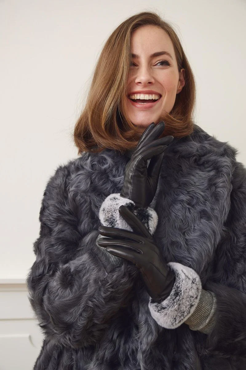 Diese Fellhandschuhe haben wunderschöne Details, wie das weichste Kaninchenfell um die Handgelenke. Außerdem haben sie schöne Details auf dem Handrücken mit Nähten, die dem Handschuh die perfekte Passform und Form geben. Der Handschuh ist in zwei Farben erhältlich: braun und schwarz mit weißem und schwarzem Kaninchenfell. So können Sie das Paar wählen, das perfekt in Ihre Garderobe passt. Sie werden es nicht bereuen, sich ein Paar unserer Kassandra Fellhandschuhe gegönnt zu haben – ganz im Gegenteil!