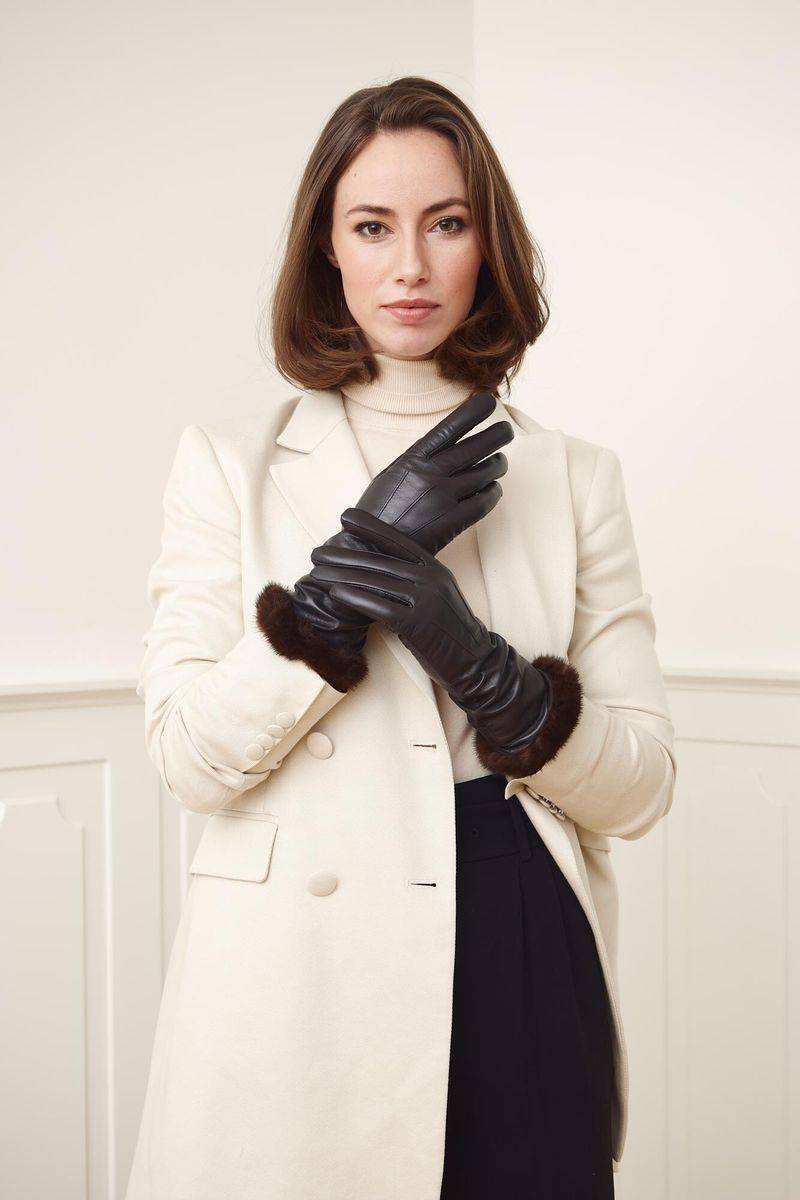 Unsere Kimberly Lederhandschuhe sind die perfekte Wahl, wenn Sie das praktische mit Qualität und Eleganz kombinieren möchten. Diese Handschuhe haben einen sehr klassischen Ausdruck und der Nerzpelz, der sich um das Handgelenk schmiegt, ist genau das, was diese Handschuhe unvergleichbar macht. Die schönen Details werden mit der Hochwertigkeit des Materials kombiniert und Kimberly wird sicherlich Ihren neuen besten Freund in den kalten Wintermonaten.
