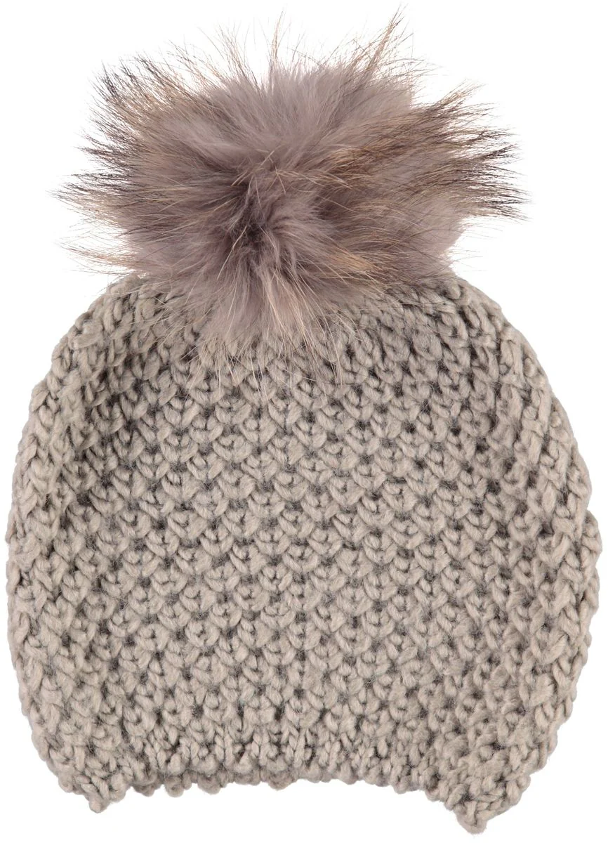 Die Mütze ist von sehr hoher Qualität, da sie aus der weichsten und wärmsten Wolle gestrickt ist. Außerdem hat sie einen exklusiven Touch mit dem schönen und flauschigen Bausch aus echtem Waschbärfell auf der Oberseite. Die Mütze gibt es in 10 verschiedenen Farbkompositionen, weshalb es noch mehr Kristine Mützen gibt, in die Sie sich total verlieben werden. Wir lieben sie alle!