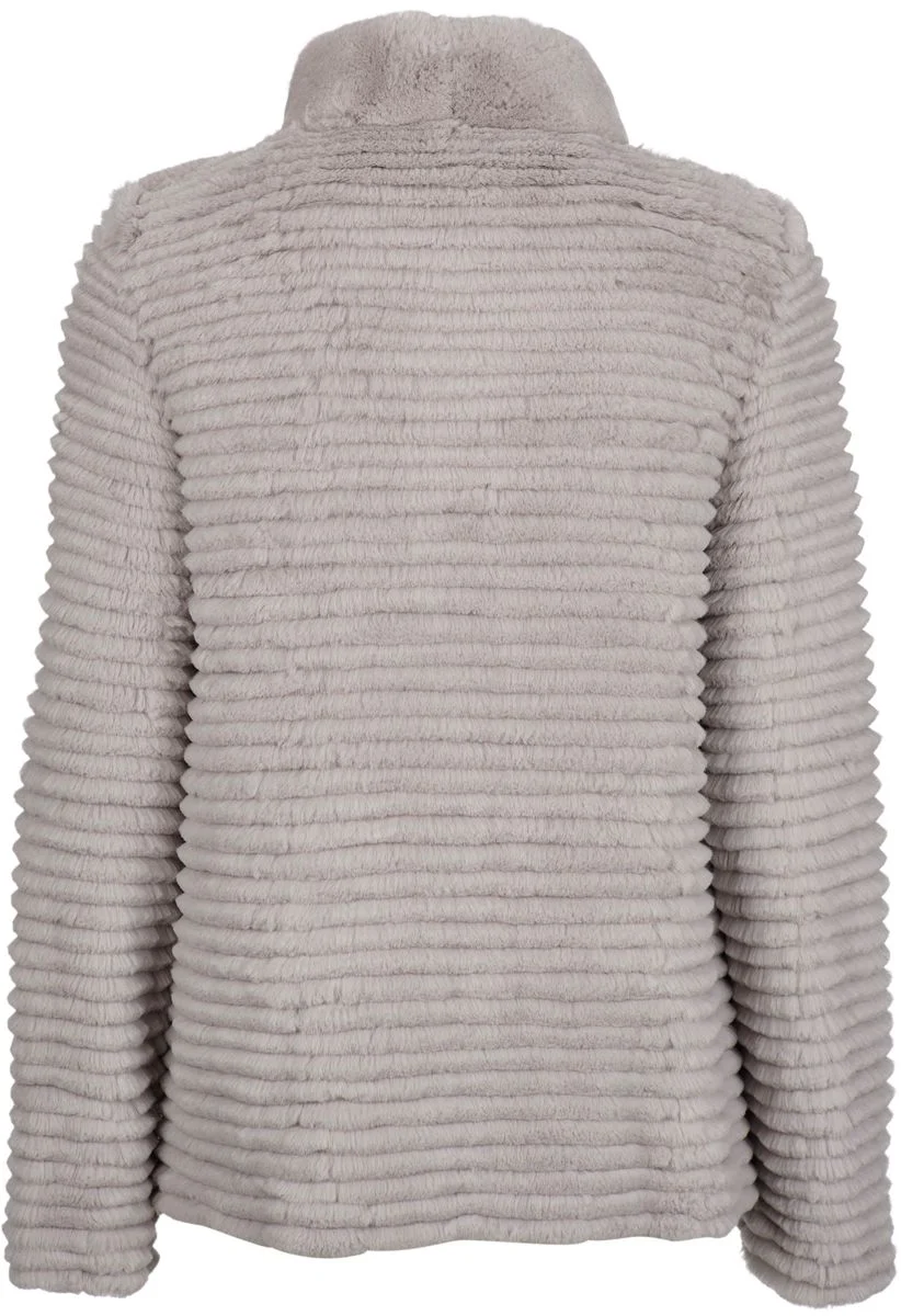 Lauren ist eine natürlich schöne Jacke aus exklusivem Rex Kaninchenfell. Das Kaninchenfell wurde in schmalen Streifen zusammengenäht und deckt außer den kragen die ganze Jacke. Der Kragen wurde aus einer breiten Streifen von weichem Kaninchenfell gemacht.