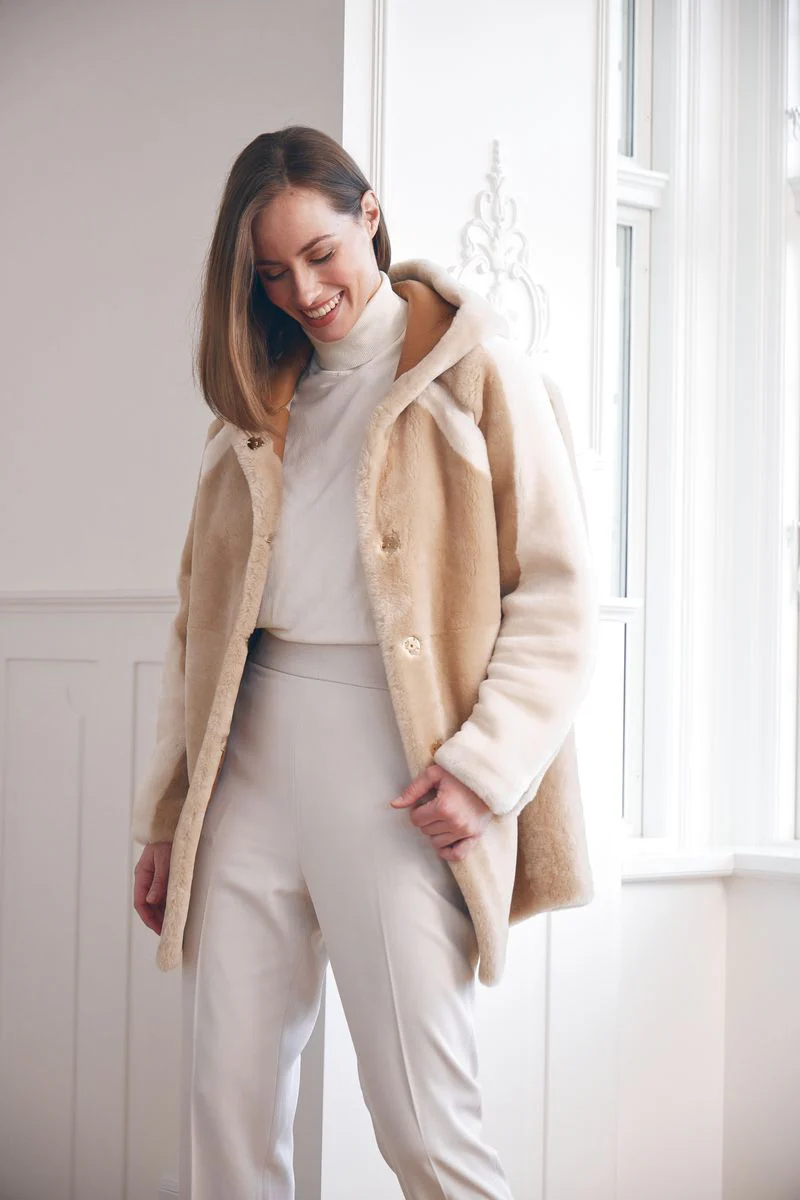 Leah ist eine wunderschöne Felljacke aus dem exquisiten Doubleface Schaffell. Doubleface Schaffell ist bekannt für seine sehr hohe Qualität und die weiche Fellseite, die diese Jacke im Inneren verschönert.
