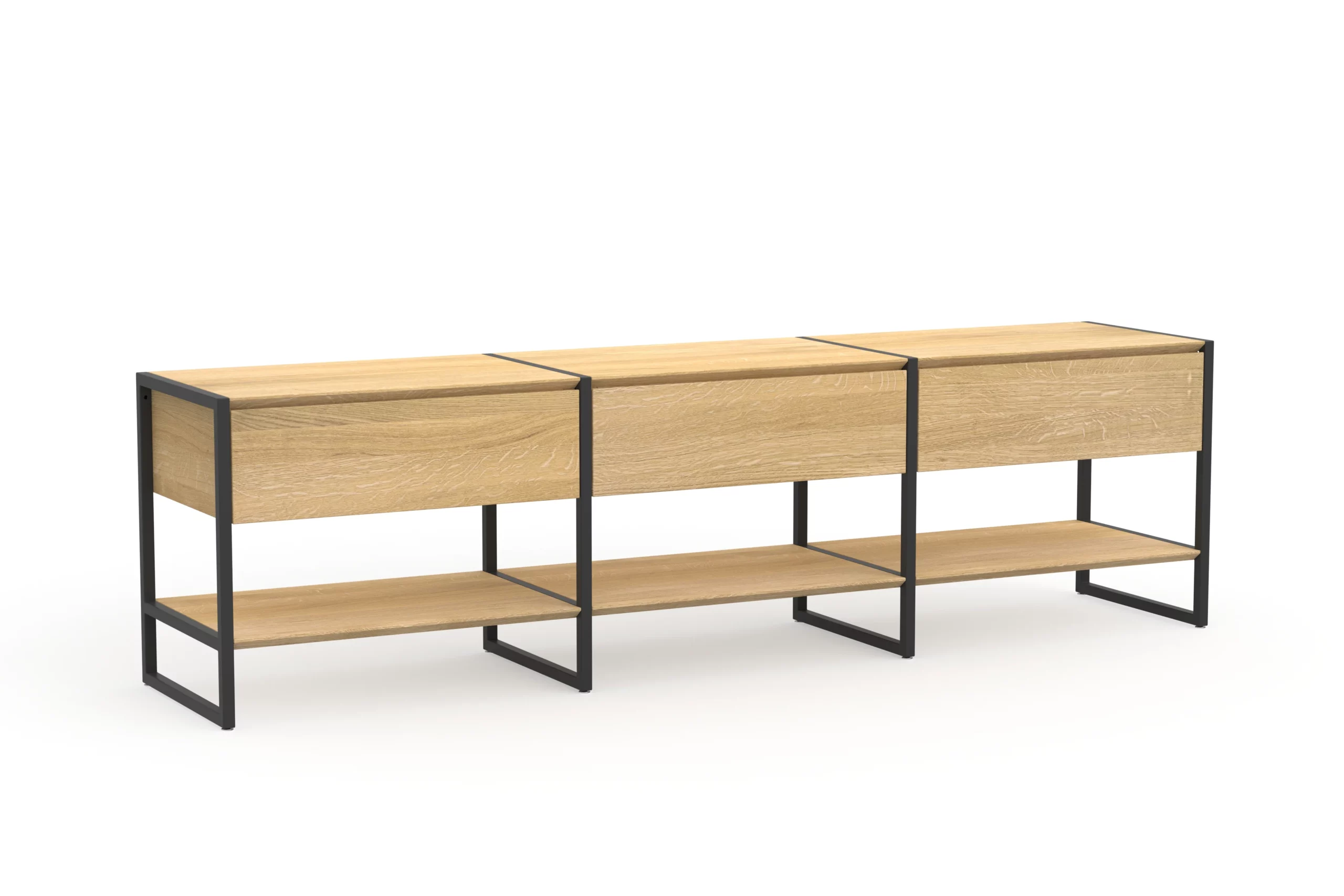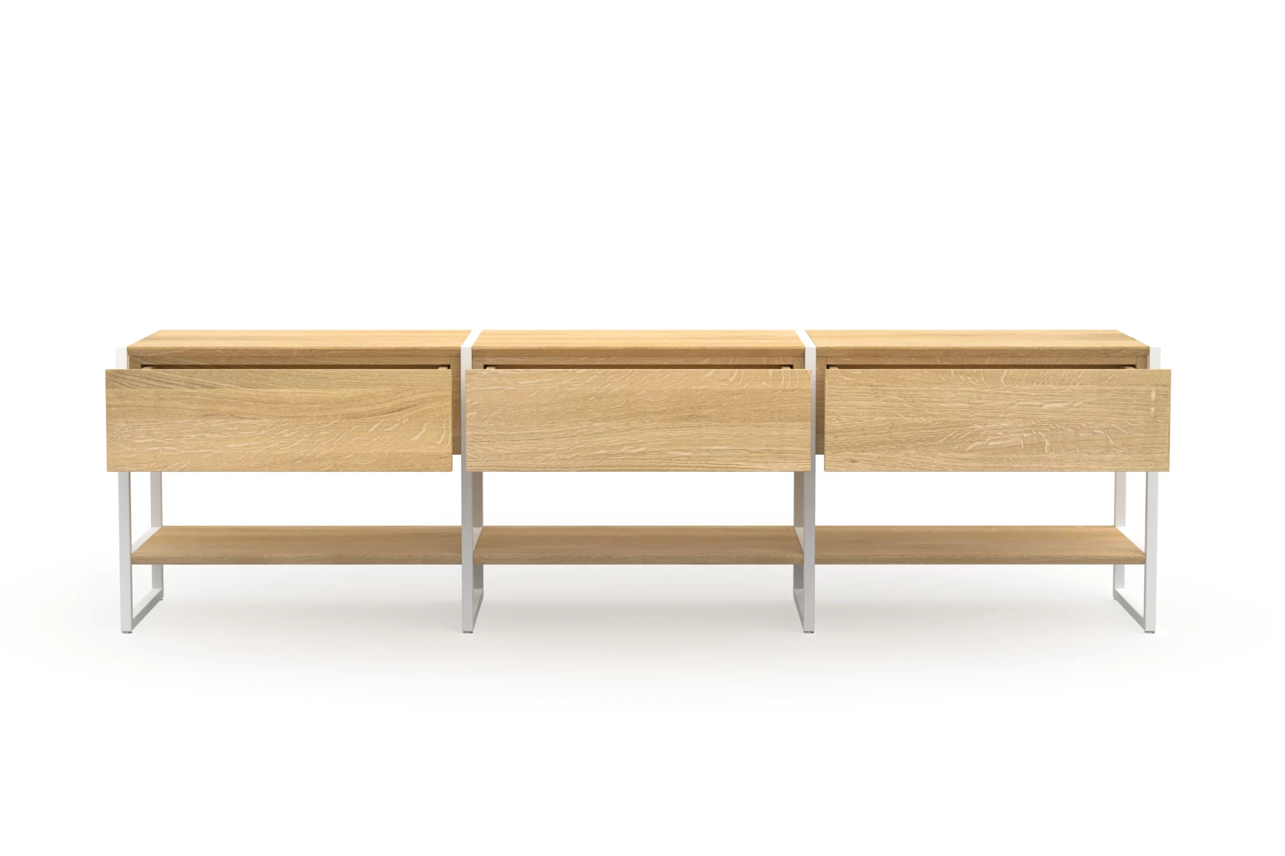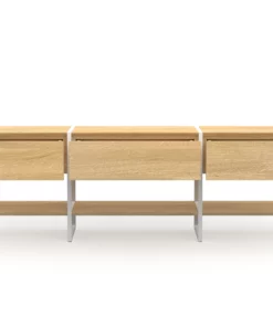 Durch den schlanken Rahmen und Regalfächern in zwei Breiten 168 cm oder 188 cm mit schmal gefrästen Kanten kommt Wega sehr stilvoll daher. Dank des Rahmens aus pulverbeschichtetem Stahl benötigt das Lowboard weniger Material und ist trotzdem äußerst stabil. Dezente verstellbare Füße gleichen Unebenheiten im Boden aus.