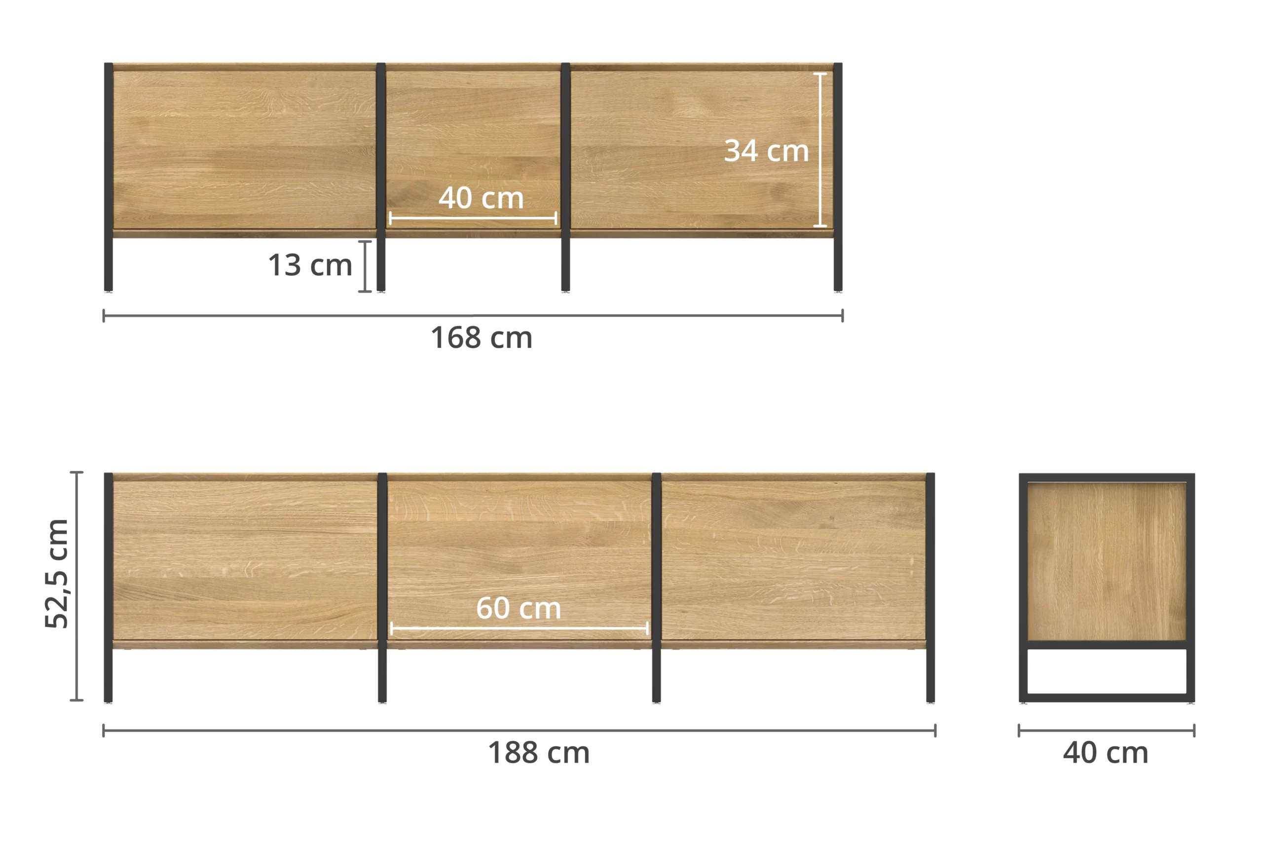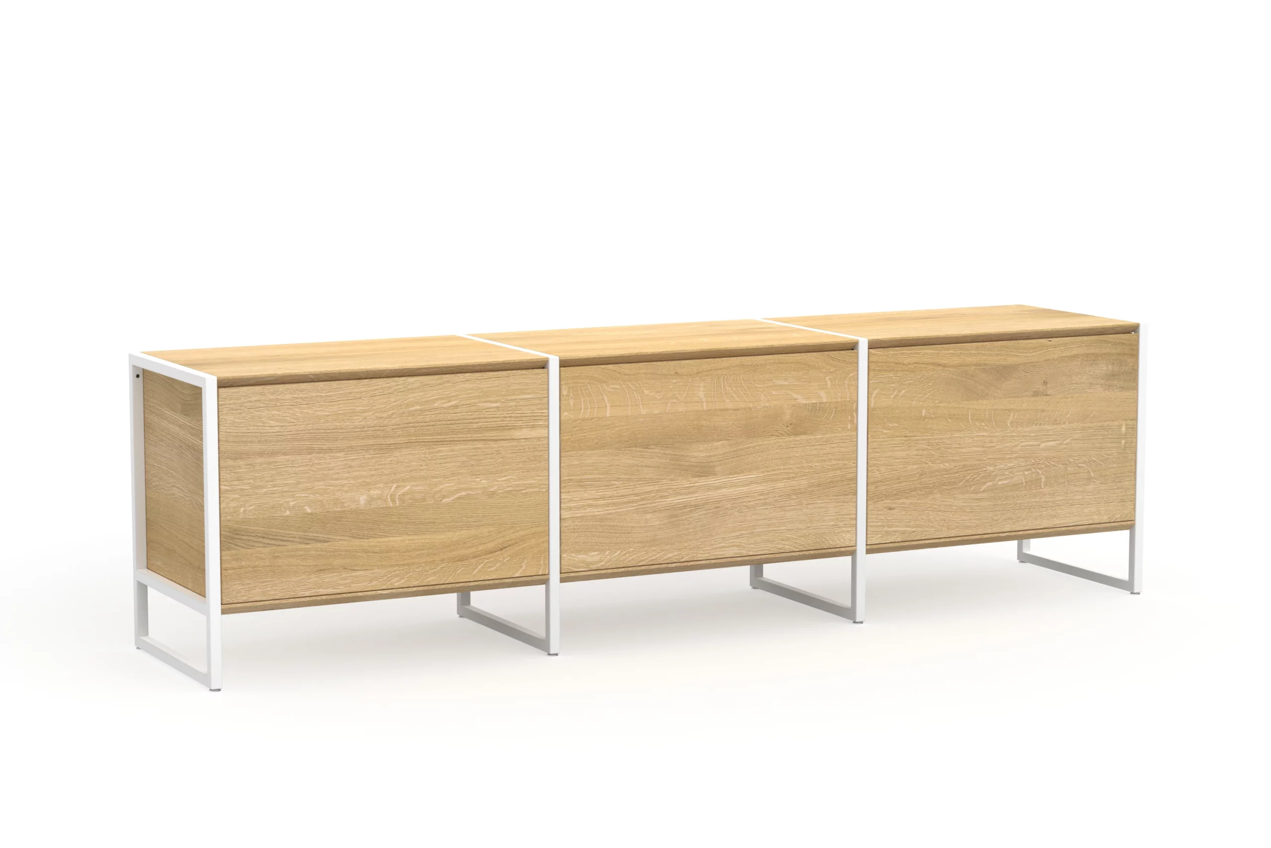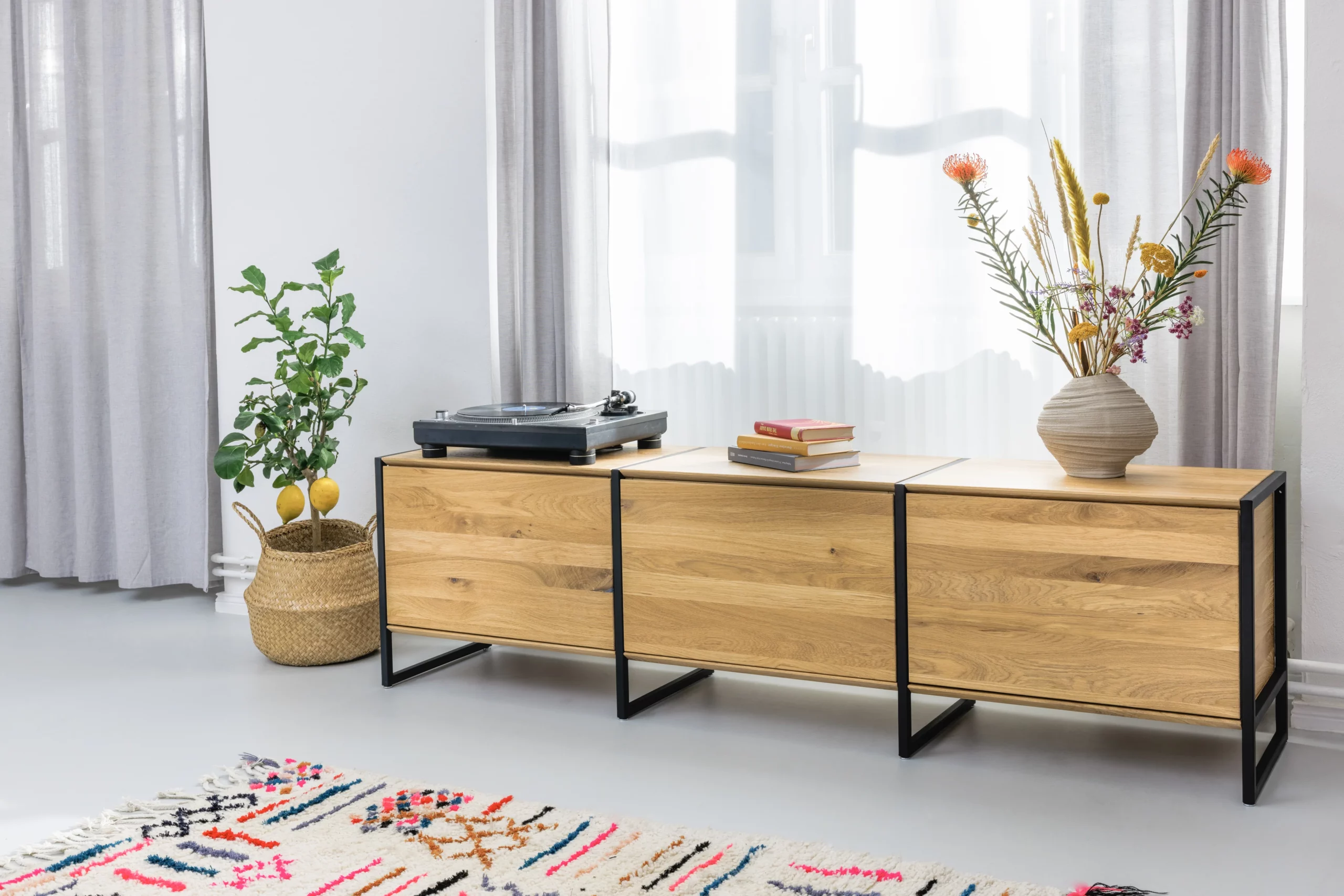 Durch den schlanken Rahmen und Fach-Regalen in zwei unterschiedlichen Breiten in 40 oder 60 cm kommt Wega sehr stilvoll daher. Dank des Rahmens aus pulverbeschichtetem Stahl benötigt das Lowboard weniger Material und ist trotzdem äußerst stabil. Dezente verstellbare Füße gleichen Unebenheiten im Boden aus.
