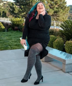 Was erhältst du, wenn du Eclipse mit Lux kombinierst? Du bekommst Moonlit – die perfekten, funkelnden, faux Oberschenkel-hohen Strumpfhosen. Sie sind komplett gestrickt, ja, sogar die glitzernden Teile, die aus einem Lurexfaden bestehen. Das macht sie unglaublich langlebig.