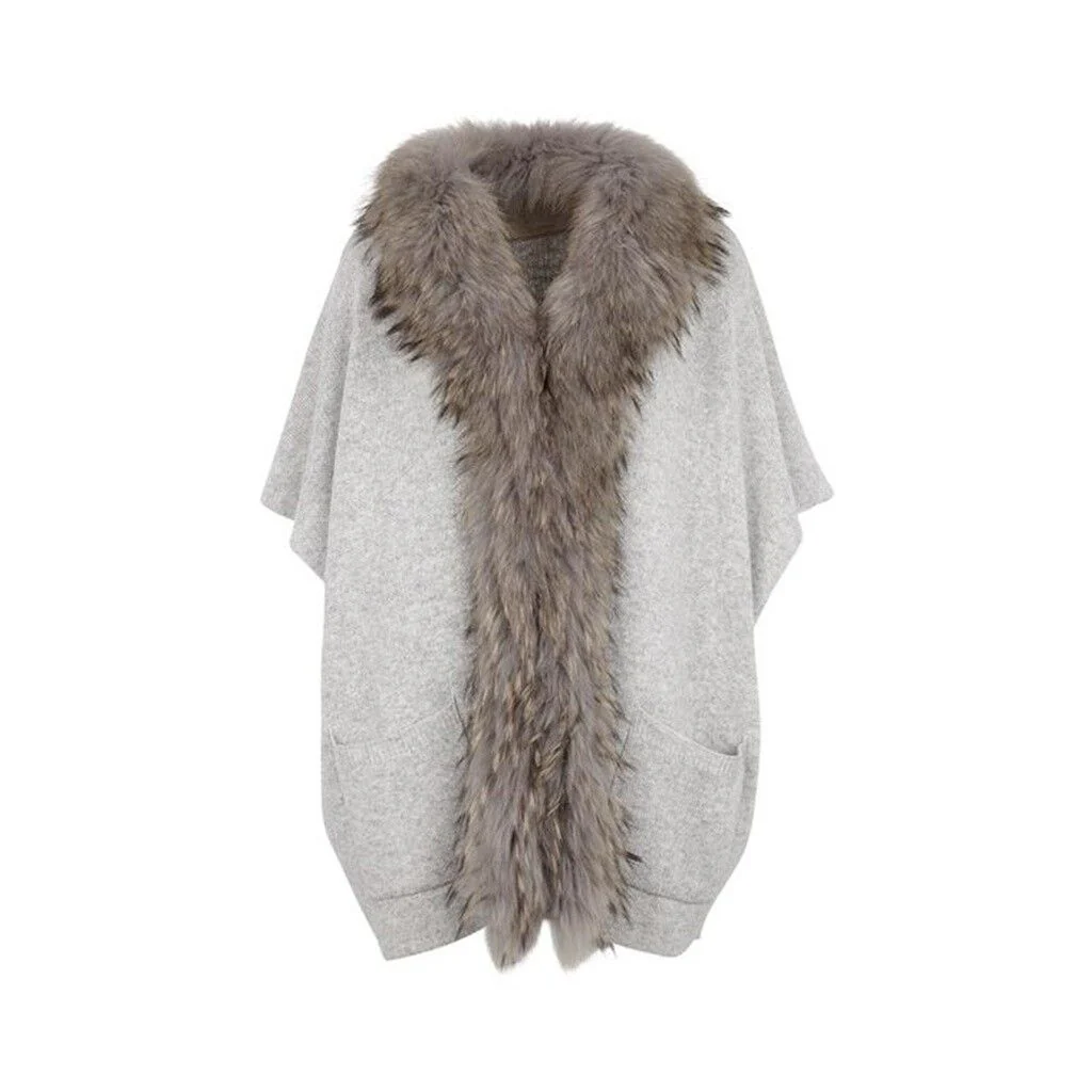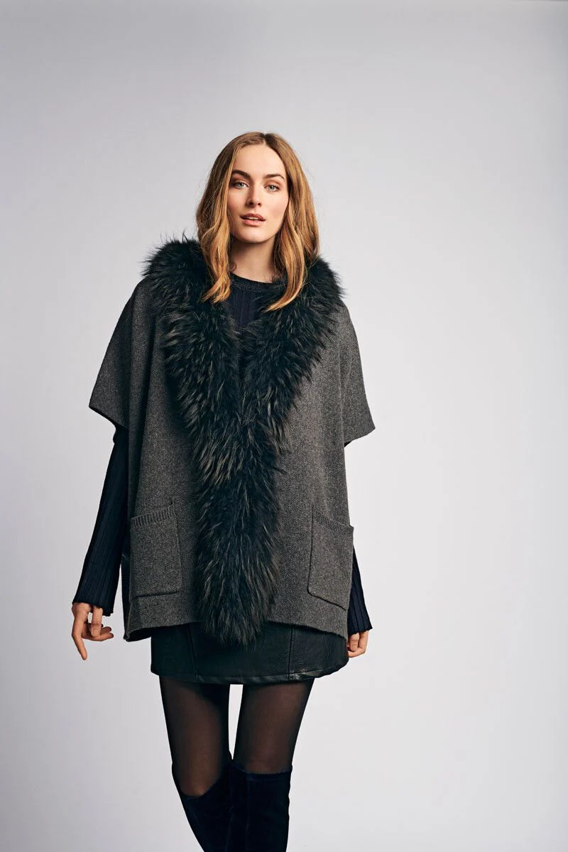 Genießen Sie die Natur mit echtem Pelz in Ihrem Kleiderschrank. Dieser Nina Poncho ist der perfekte Weg, um Ihre Garderobe im Handumdrehen aufzuwerten. Der Poncho ist aus echtem Waschbärfell aus den USA und der weichsten Wolle, die Sie je kennenlernen werden.