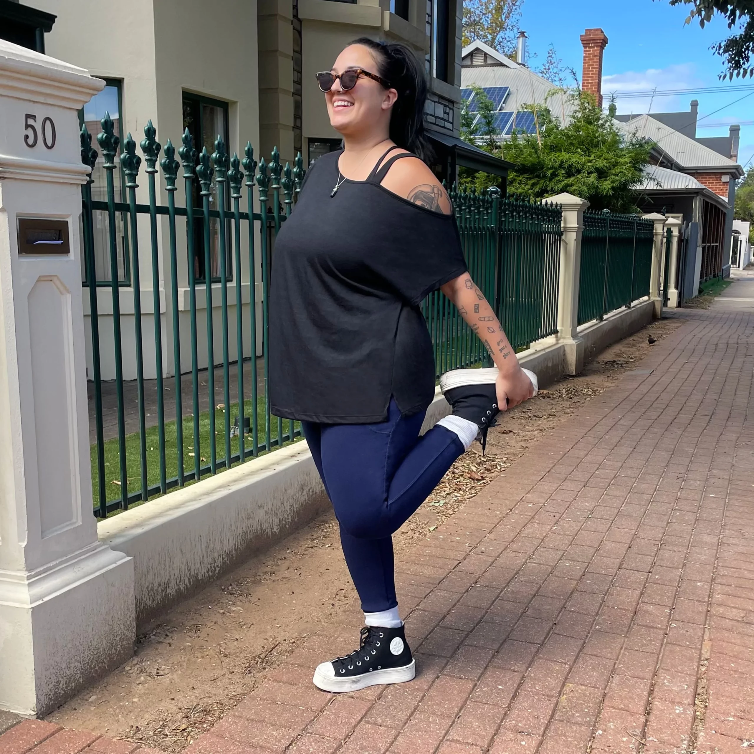 Egal, ob du ins Fitnessstudio gehst oder einfach nur ein Basic für deinen Kleiderschrank suchst, dieses Off-the-Shoulder T-Shirt ist für dich. Es ist ein vielseitiger Schnitt, ideal, um es locker für einen entspannten Look zu tragen oder geknotet für Retro-Vibes. Außerdem ist es aus super weichem, leichtem Material, perfekt für die wechselnden Jahreszeiten. Kombiniere es mit unseren Leggings für einen bequemen Look, den du jeden Tag tragen möchtest.