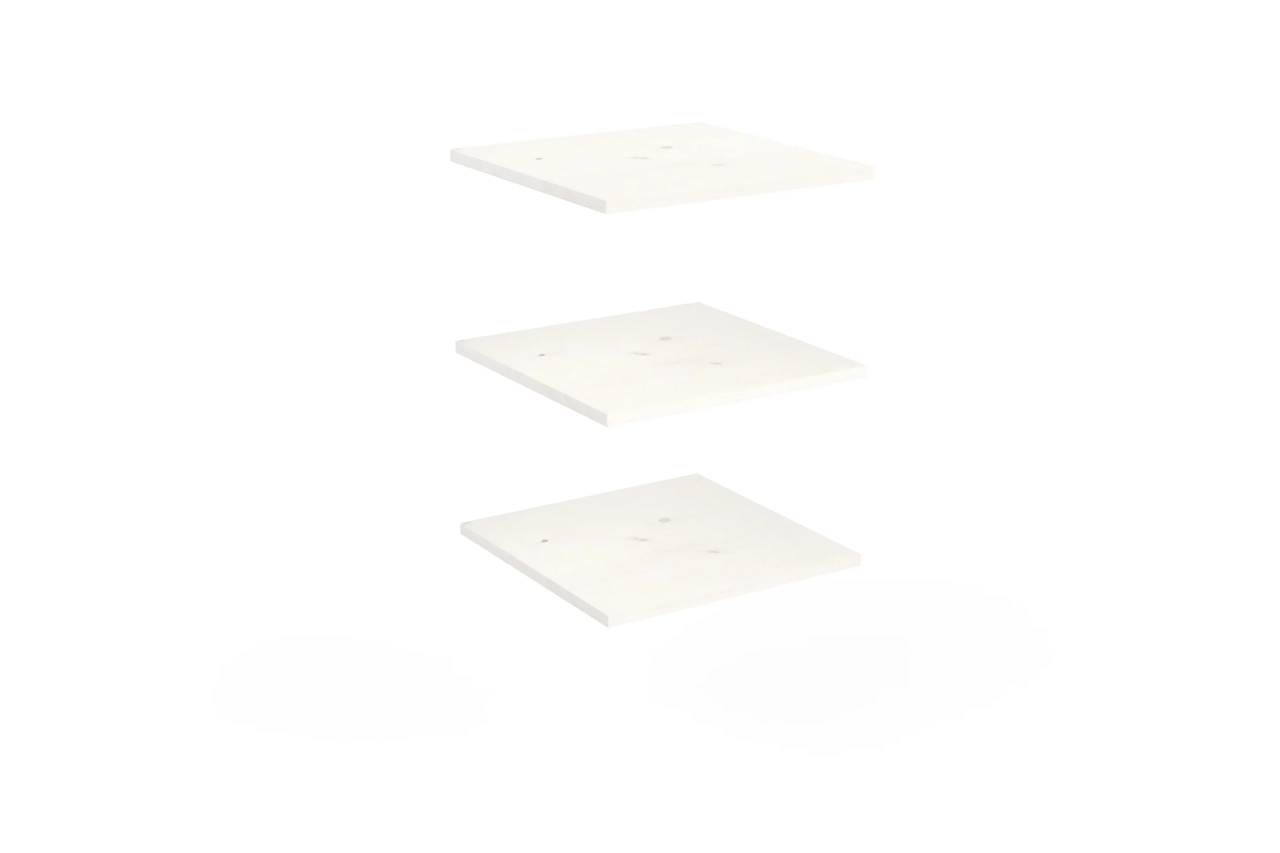 3 Zusatzregale für den schmalen Enorm Schrank S (49cm). Die Regale können auf einem Lochraster in verschiedenen Höhen platziert werden.