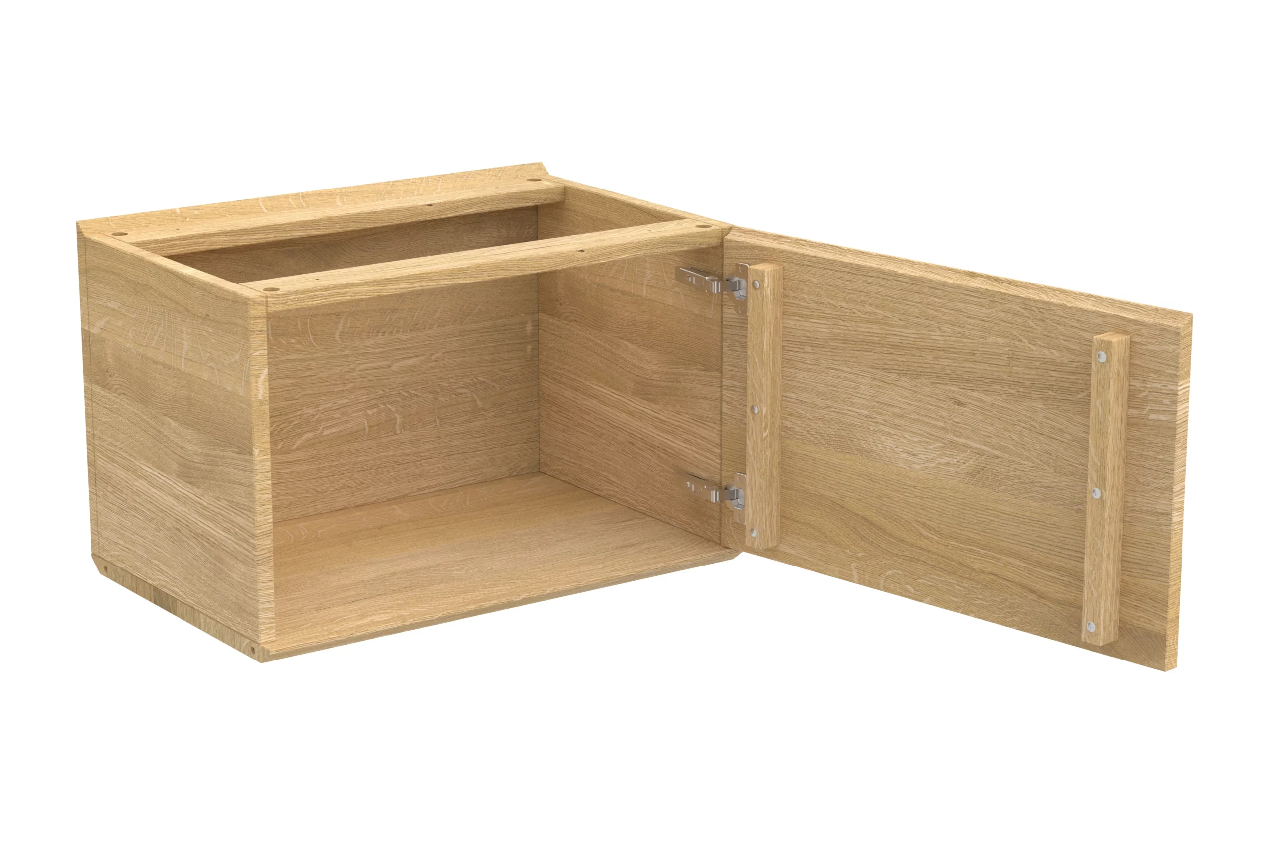 Dies ist ein Türenmodul für das Regal Wega (Breite: 60cm, Tiefe: 40cm | Innenmaß 56 x 34 x 36 cm). Die Türen schließen mit Soft-Close Mechanik und können zur Öffnung in beide Richtungen montiert werden.