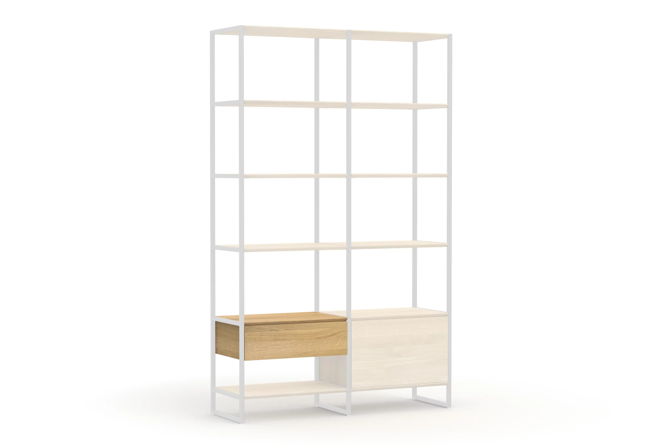 Du kannst optional anstelle von Regalfächern pro Regalsäule folgende Schubladenmodule bestellen: