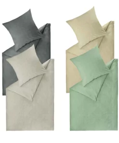 Diese Bettwäsche ist in vier eleganten Farben erhältlich – Grau, Anthrazit, Beige und Grün – und passt somit perfekt zu jedem Schlafzimmerdekor. Zusätzlich bieten wir passende Kopfkissenbezüge in verschiedenen Größen an: 40x40cm im 2er Pack, 40x80cm im 2er Pack und 80x80cm einzeln. Jedes Detail dieser Bettwäsche wurde sorgfältig durchdacht, um Ihnen den bestmöglichen Komfort und Stil zu bieten.