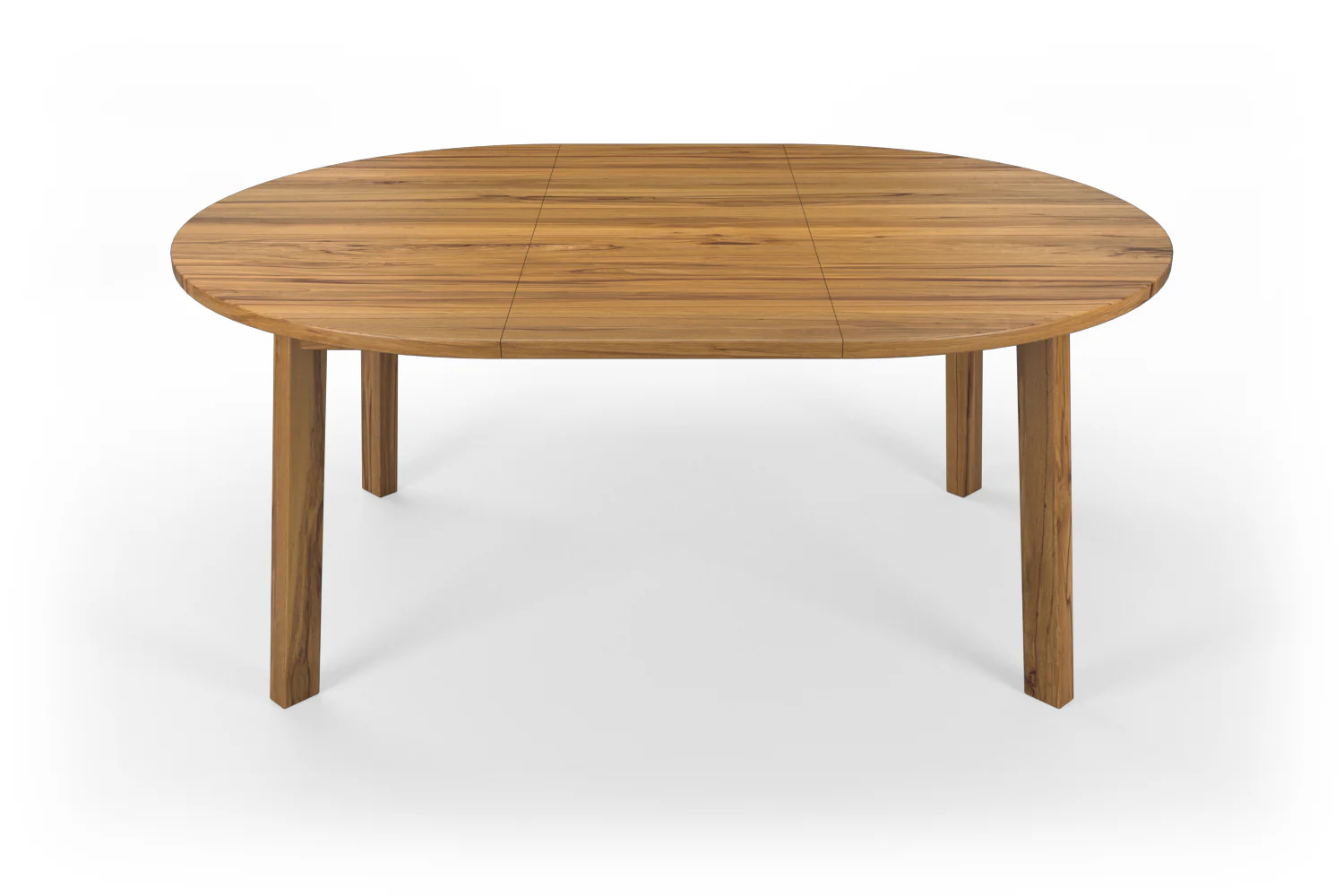 Wir nutzen bewährte Qualitätskomponenten für Massivholztische. Die Erweiterungsplatte hat eingefräste Griffe, wodurch sie sich von einer Person leicht ausklappen lässt. Auch im ausgefahrenen Zustand büßt der Tisch nicht an Stabilität und Standfestigkeit ein.