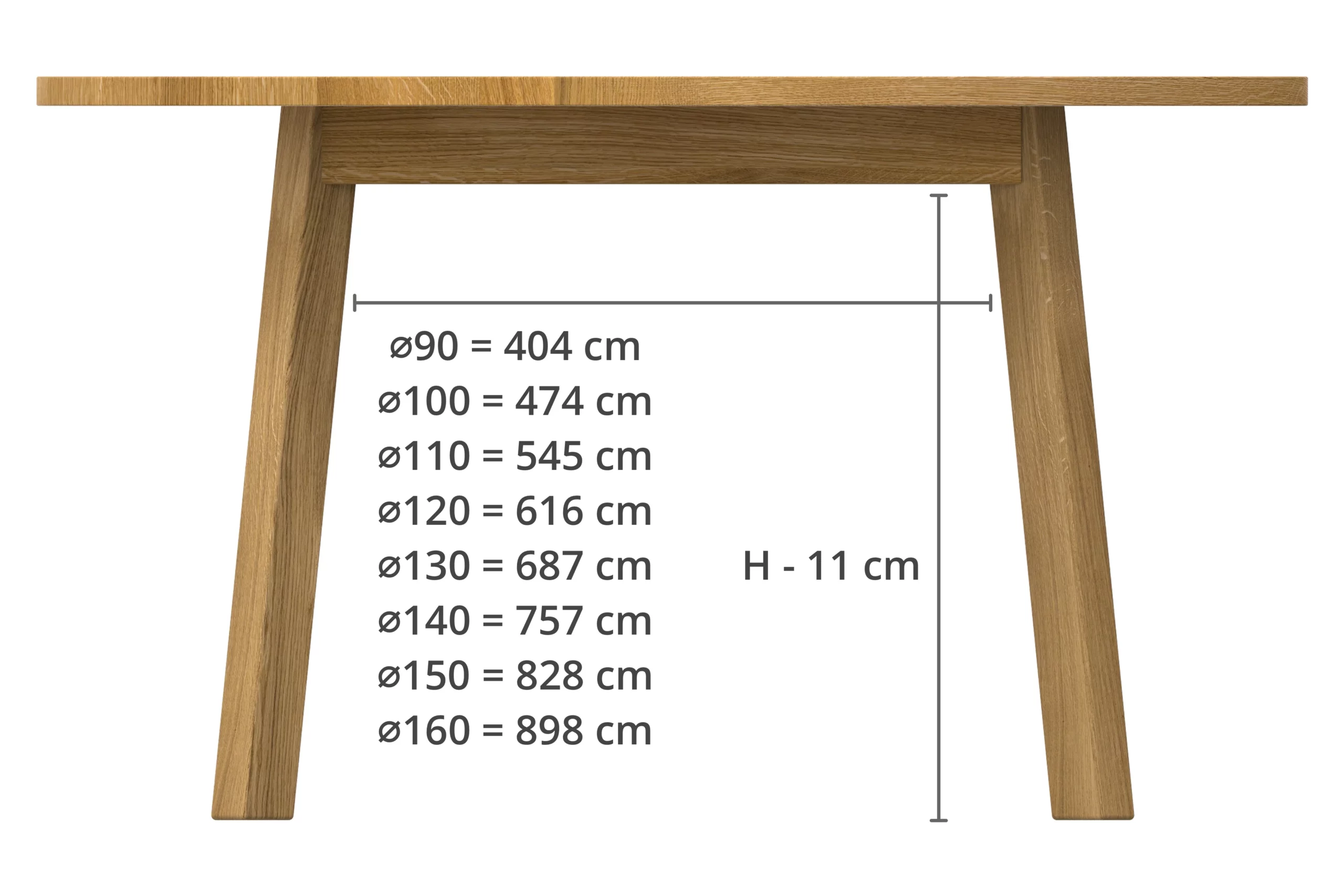 Die stabilen Tischbeine sind leicht angekippt und die Kanten gerundet. Für die Tischplatte stehen dir vier unterschiedliche Kantenschliffe zur Auswahl.