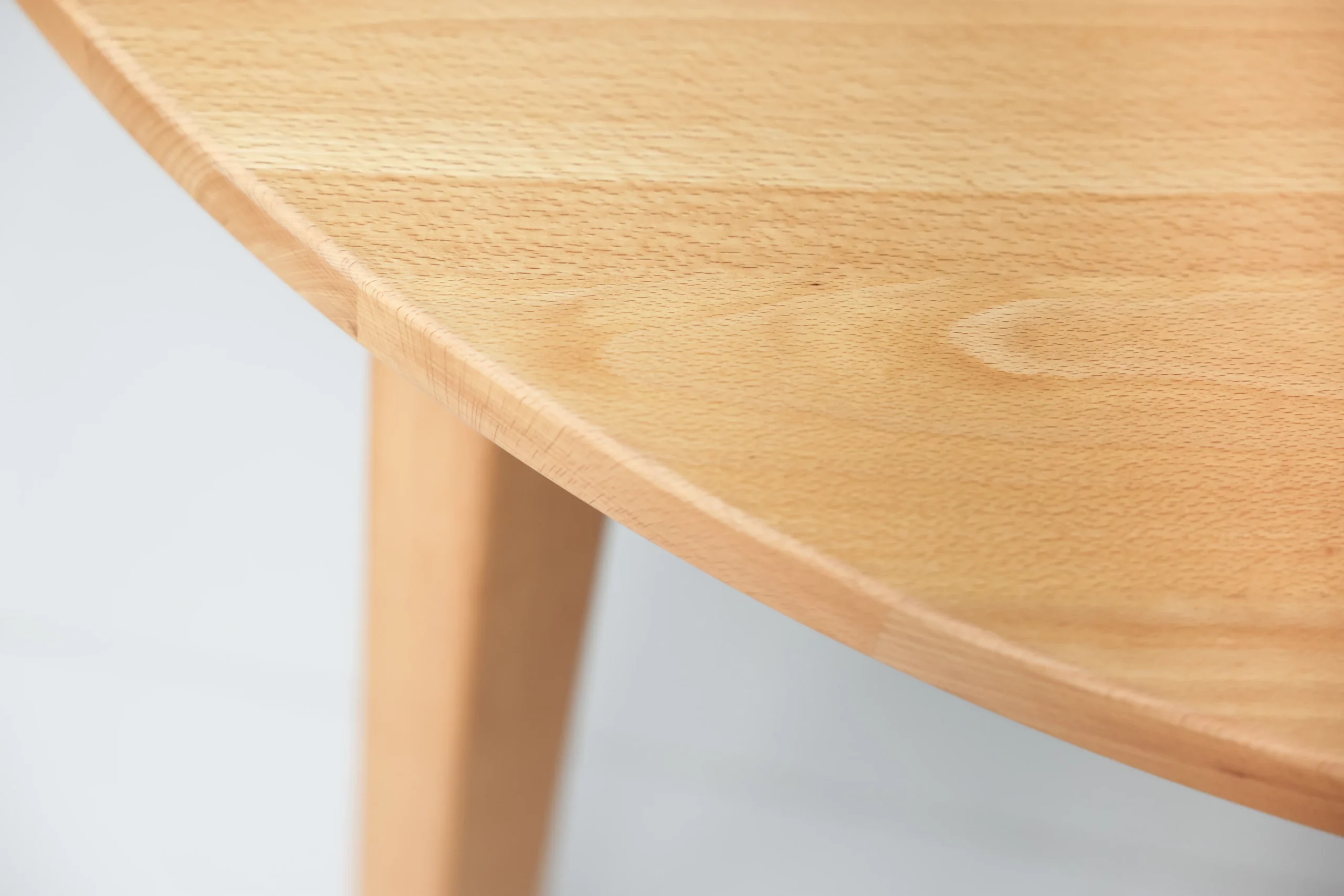 Die stabilen Tischbeine sind leicht angekippt und die Kanten gerundet. Für die Tischplatte stehen dir vier unterschiedliche Kantenschliffe zur Auswahl.