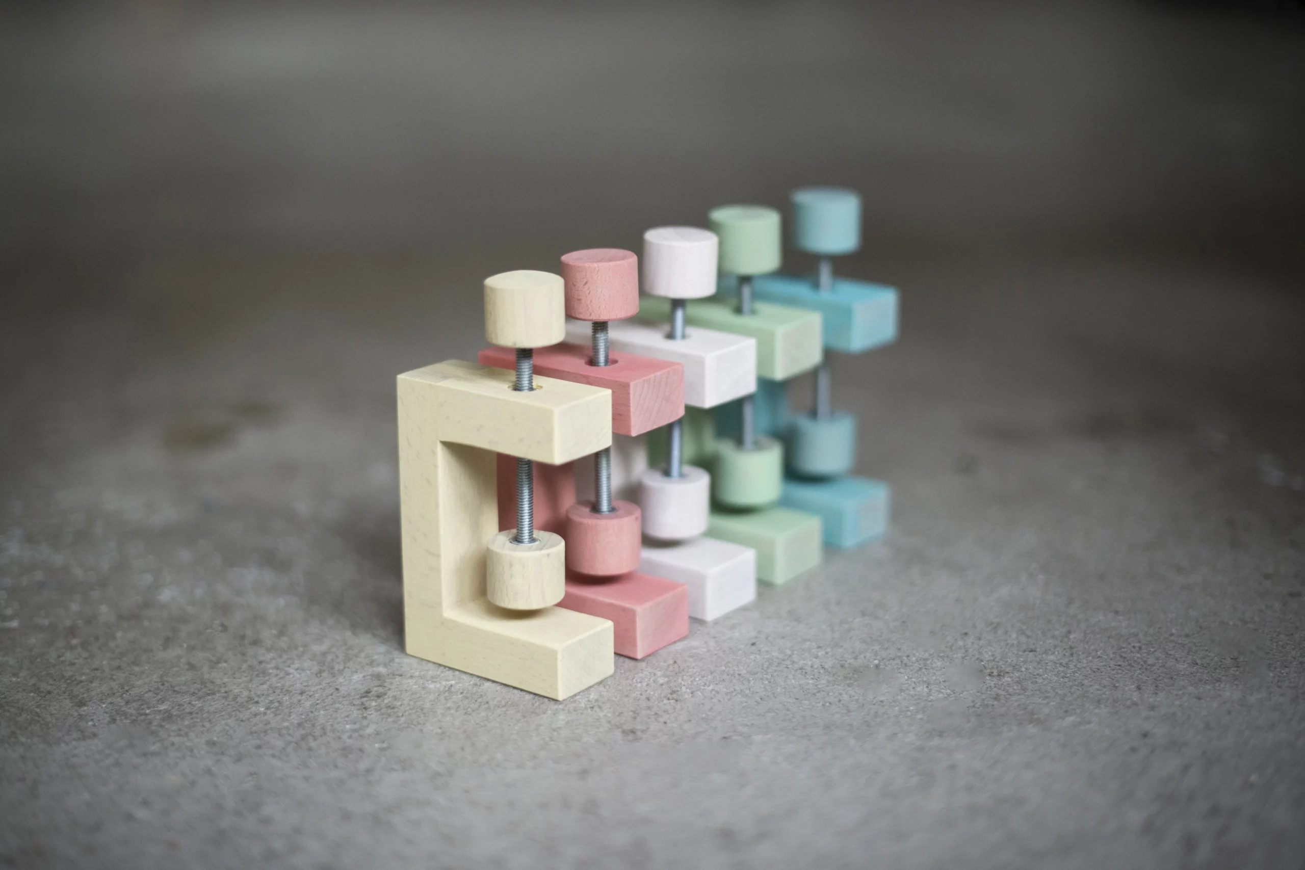 5 Stück der Schraubzwinge aus Eichenholz mit ökologischer Farblasur zum befestigen von Wein-/Gemüsekisten. Die Schraubzwinge ist in 5 Farben erhältlich. Daumenregel: Eine Zwinge pro Kiste.
