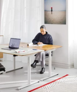Mit dem Steuergerät kannst du die Tischhöhe manuell einstellen oder bequem bis zu 4 Höhen speichern. Es kann dich auch daran erinnern, dass du zwischendurch im Stehen arbeitest. Du kannst den Tisch auch per App steuern und verschiedene Benutzerprofile für denselben Tisch anlegen.