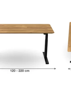 Das Tischgestell ist aus stabilem Stahl gefertigt und kann ein Gewicht von 120kg (inklusive Tischplatte) ohne Problem heben. Die Höhe lässt sich von 59,5 bis 124cm einstellen. Damit können sowohl Schulkinder an dem Tisch sitzen als auch große Menschen am Tisch stehen.