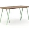 In der einfachsten Tischbock-Form hat Libra trotzdem eine stabilen Stand. Das gebogene Stahlrohr macht ihn praktisch unverwüstlich. Die Rundungen wirken weich und elegant. Für den Transport lässt sich das Mittelbein schnell und einfach herausdrehen.