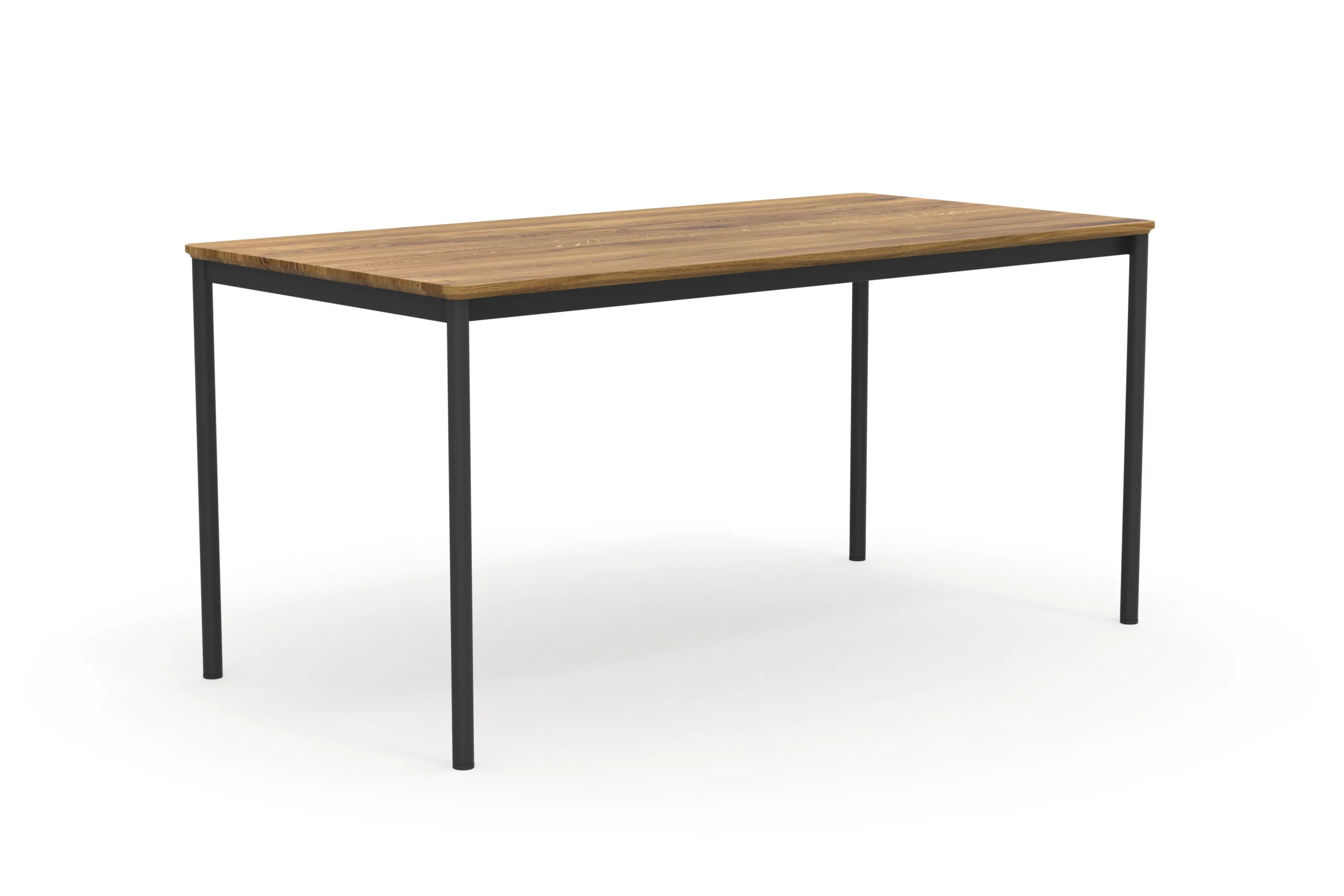 Mira ist ein simpler aber zeitlos schöner Schreibtisch. Die runde gefräste Tischkante fließt gleichmäßig in die runden Tischbeine. Trotz schmaler Tischplatte und schlanker Beine ist Mira dank der Kombination aus Metall und Massivholz praktisch unverwüstlich.