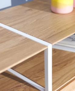 Alle Holzteile sind aus massiver sorgfältig selektierter Eiche und werden mit einem ökologischen Möbelöl aus natürlichen Rohstoffen behandelt. Ein kleiner Anteil von Weiß-Pigment hellt die Eiche leicht auf, als wäre sie gerade frisch geschnitten.