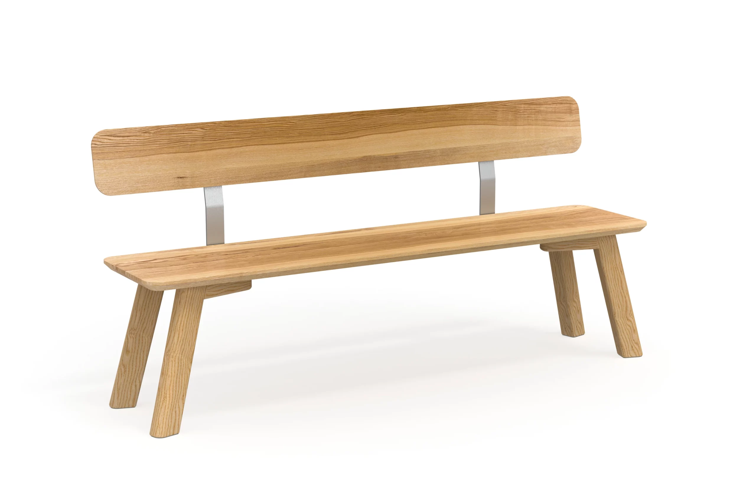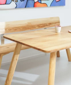Die Sitzbank mit Lehne Form A passt zum Tisch Form A und macht das Esszimmer gemütlich. Die Lehne ist sehr komfortabel und an massiven Winkel aus Edelstahl stabil befestigt. Die Sitzbank ist ebenfalls aus massivem zertifiziertem Massivholz in einer Holzart deiner Wahl gefertigt.