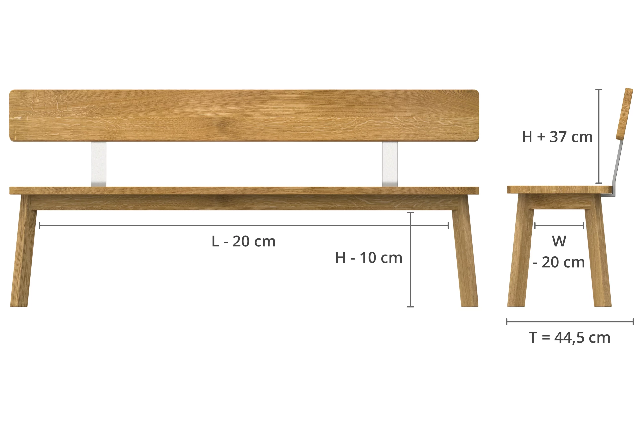Wenn die Sitzbank 30cm kürzer als der Esstisch ist, kannst du sie unter dem Tisch verstecken.