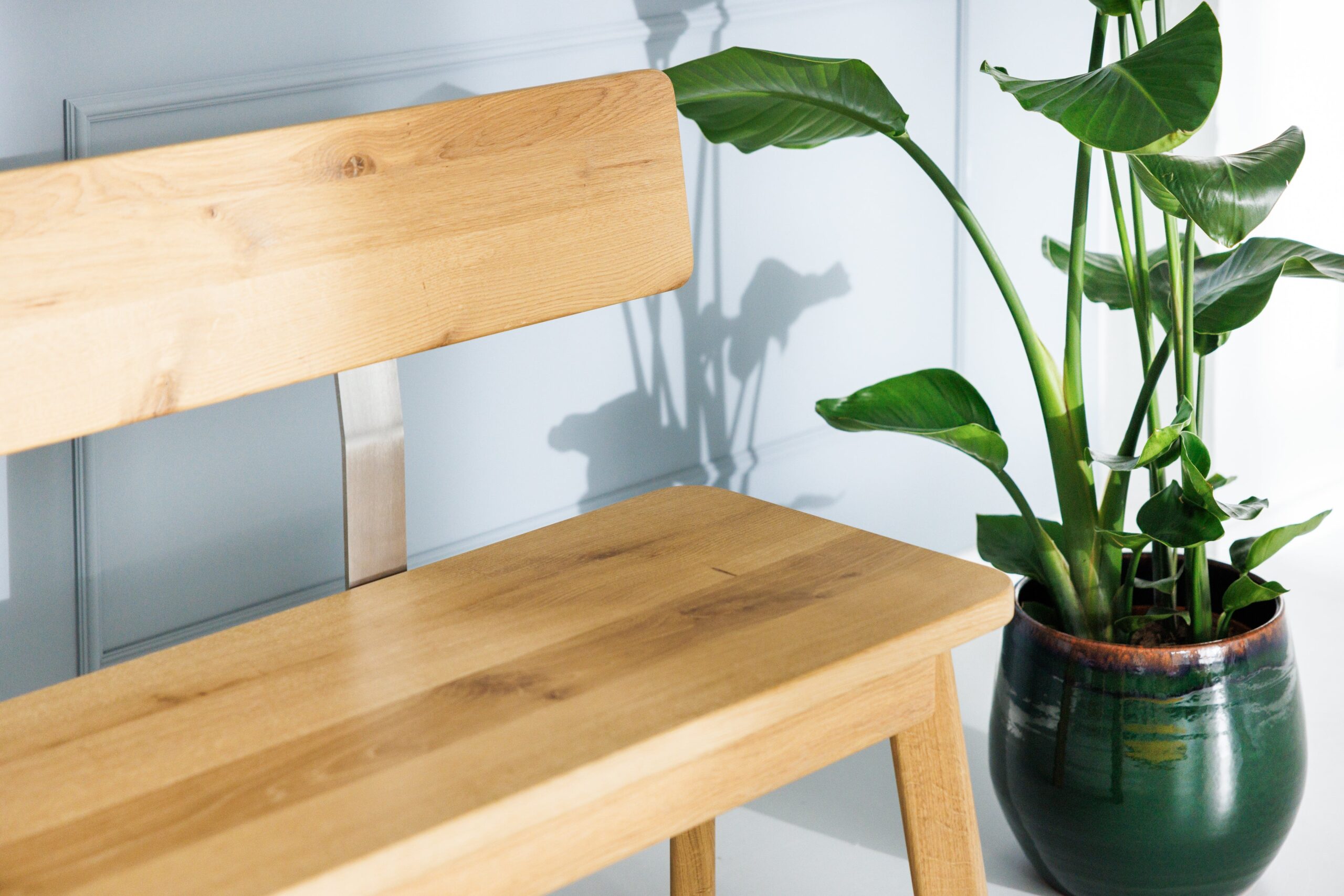 Die Sitzbank Form F passt sehr gut zu den gleichnamigen Esstischen und wird ebenfalls aus massivem zertifiziertem Massivholz in einer Holzart deiner Wahl gefertigt. Die Maserung des Holzes kommt durch die Stabverleimung (lange durchgehende Lammellen) sehr gut zur Geltung.