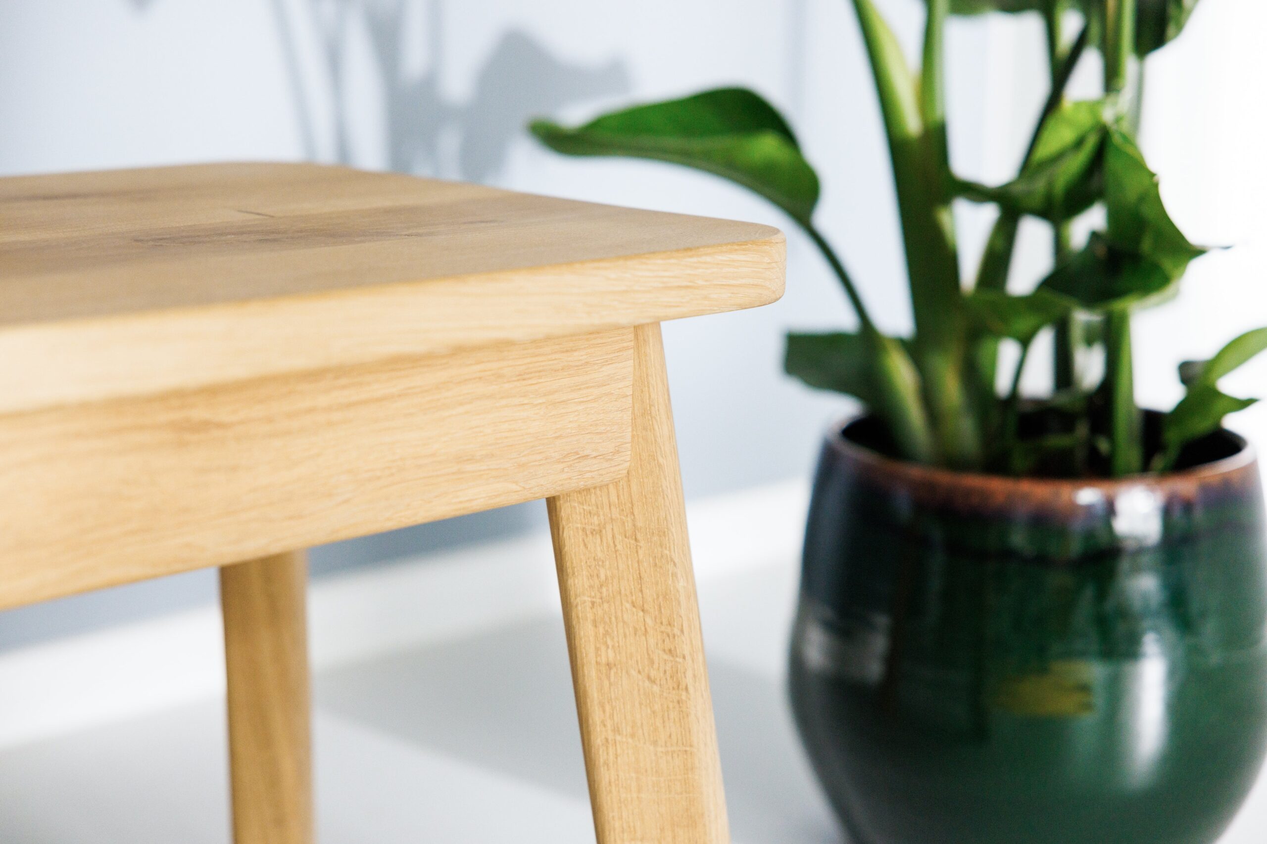 Alle Kanten werden abgerundet und die Beine sind leicht nach innen gekippt. Für die Kanten der Sitzbank kannst du aus vier unterschiedlichen Schliffen wählen – passend zu deinem Esstisch.