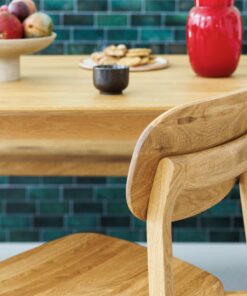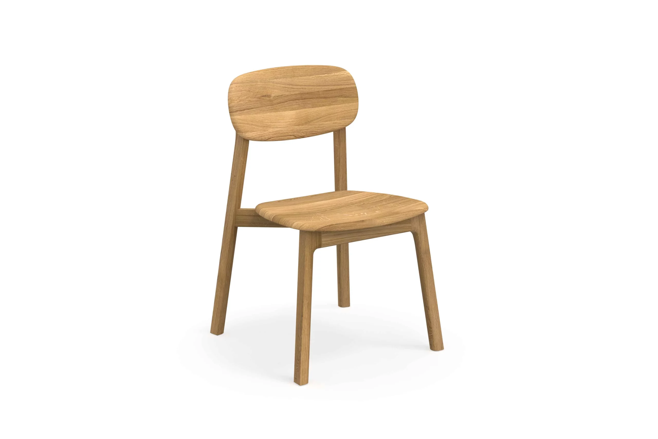 Der Stuhl wird mit einem ökologischen Möbelöl behandelt. Eiche bieten wir auch in einem weiß pigmentierten hellen Möbelöl an.