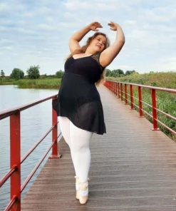 Endlich, größeninklusive Tanzstrumpfhosen. Diese 120 Denier-Strumpfhosen können dank eines strategisch gestalteten Fußlochs von fußlos zu fußbedeckt umgewandelt werden. Sie sind durchgehend mit einer Naht gearbeitet, ohne Chub Rub Band, sodass sie leicht mit einem Trikot getragen werden können. Tanze den ganzen Tag in Komfort.