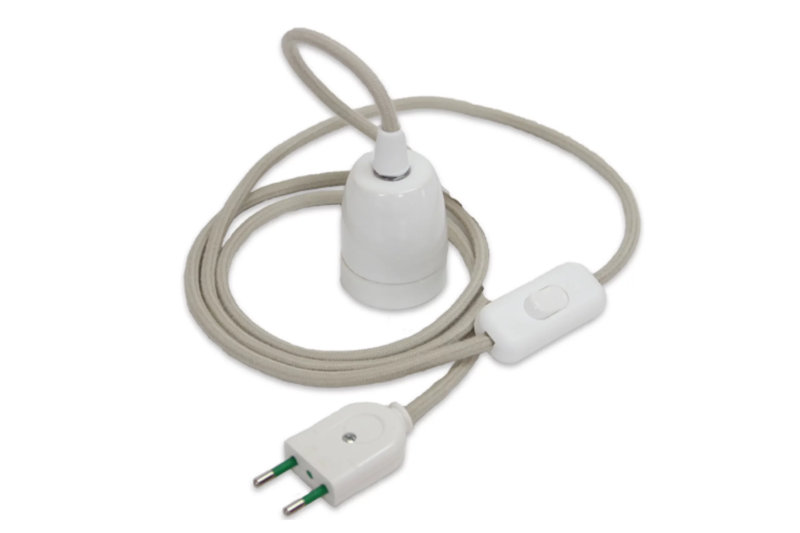Die passende DIY Tischleuchte Yuma gibt es mit schönem Baumwoll-Textilkabel, Porzellan-Fassung, Schalter und Stecker. Beton gibt es leider nicht bei uns, den bekommst du im Baumarkt für ca. 10€.