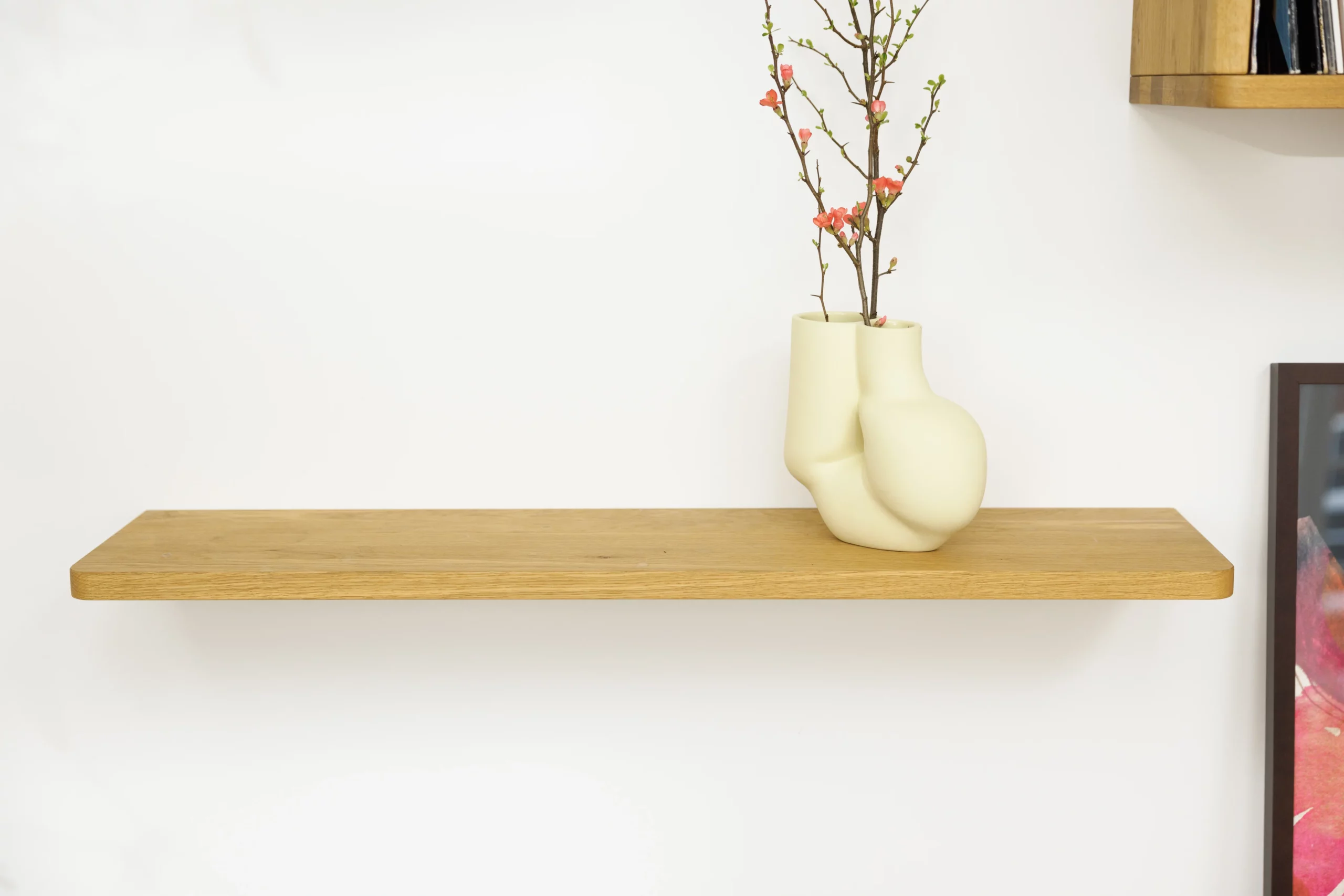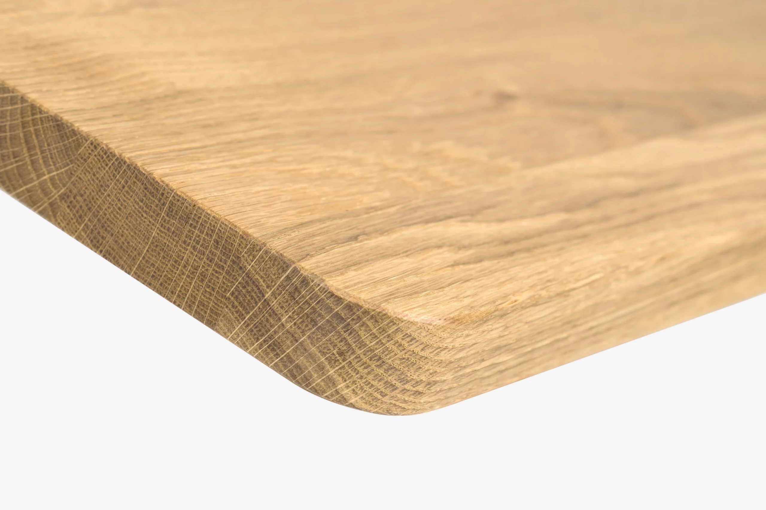 Das Massivholz aus Wildeiche ist matt geölt und macht einen sehr edlen Eindruck. An manchen Stellen sind bearbeitete Aststücke sichtbar. Die Maserung des Holzes kommt aber immer unterschiedlich raus, jedes Stück ist ein Unikat.