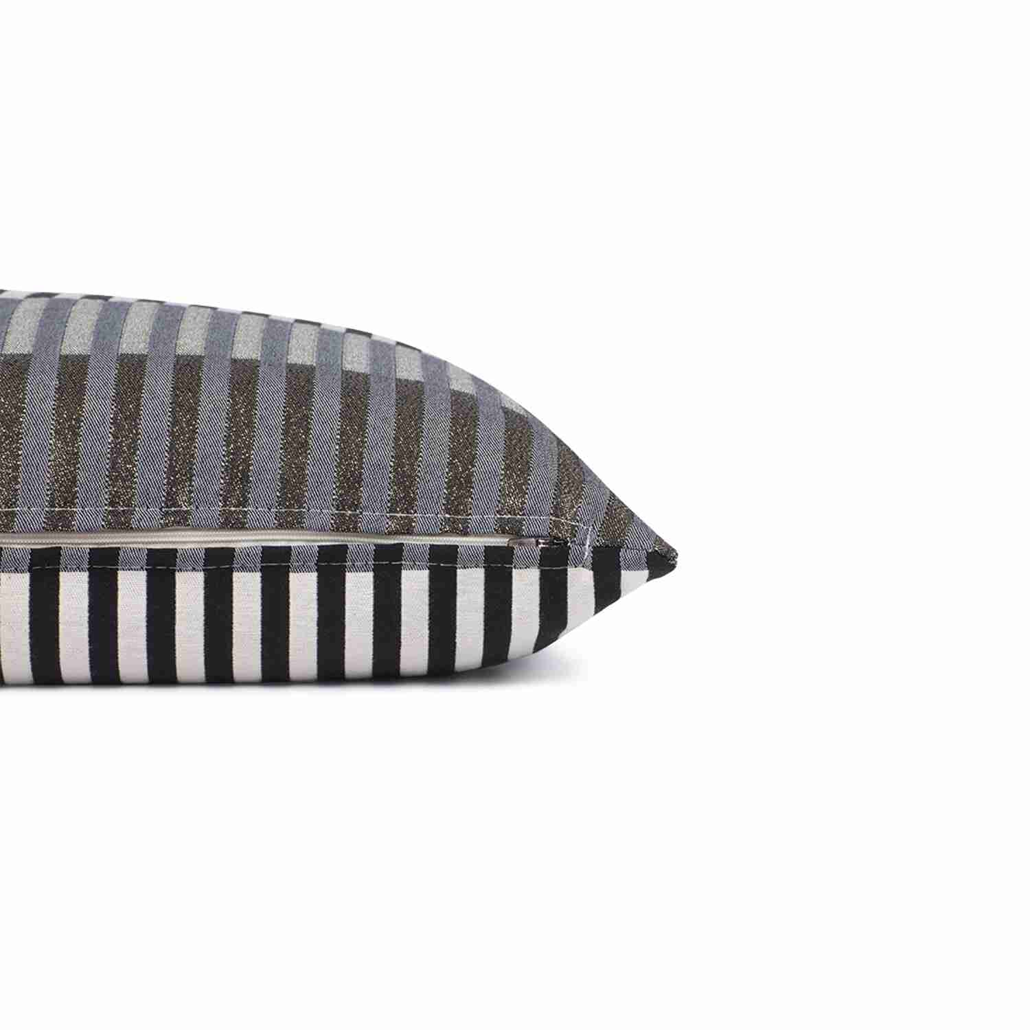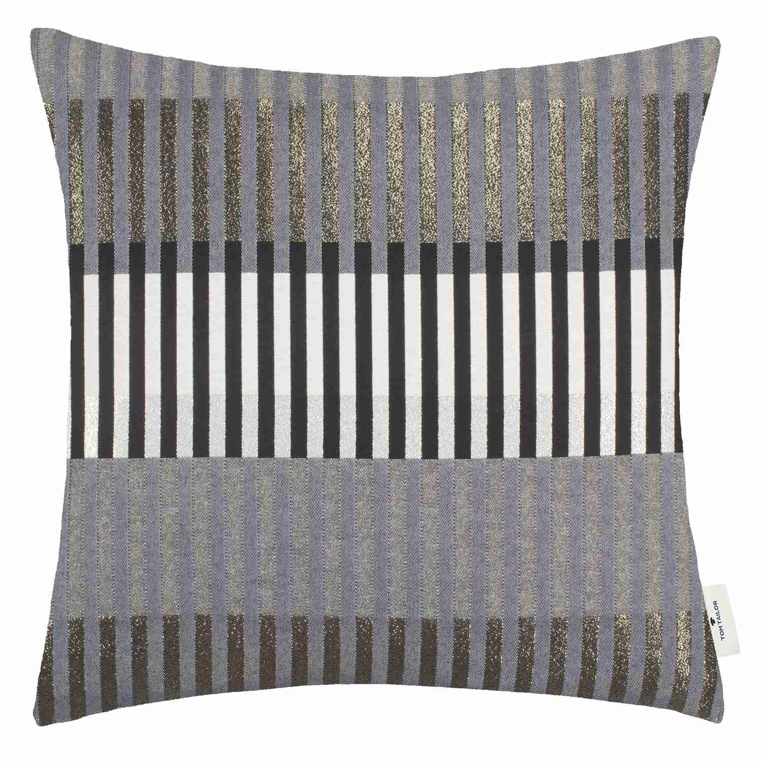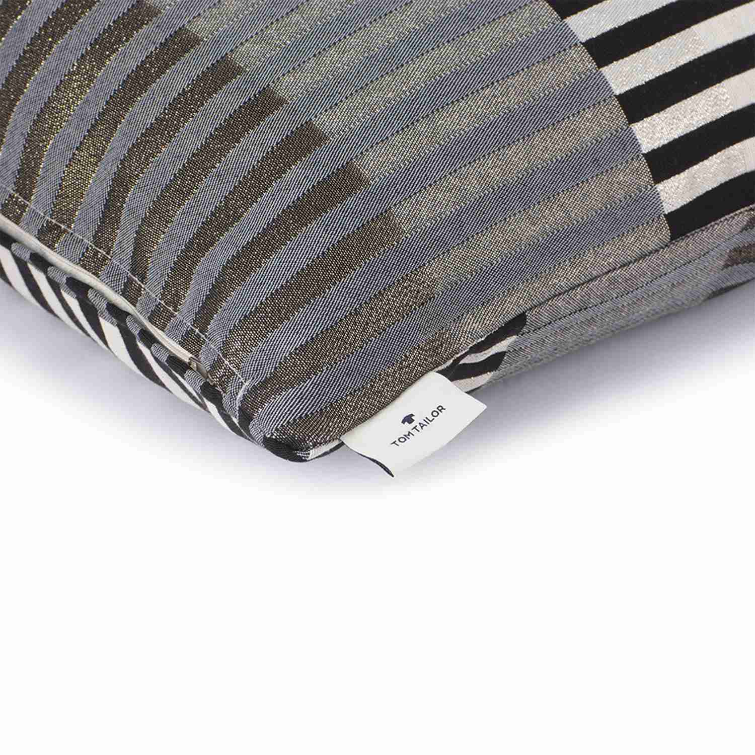 Sie wollen Ihre Wohnräume durch einen einzigen kreativen Touch erneuern? Dann ist die Zierkissenhülle „Glamour Stripe“ von TOM TAILOR genau das richtige für Sie. Das mehrfarbige Streifenmuster macht die Kissenhülle zu einem Hingucker, welche sich wunderbar mit vielen weiteren Wohnaccessoires kombinieren lässt und gleichzeitig für eine schöne Optik auf Sofas oder Betten sorgt. Ein zusätzlicher Effekt entsteht durch das silberne Metallgarn, welches die Kissenhülle noch moderner und extravaganter wirken lässt. Der Dekokissenbezug besteht aus einem hochwertigen Material-Mix und besitzt einen praktischen Reißverschluss, welcher ein einfaches Auf- und Abziehen und ein müheloses Reinigen in der Schonwäsche ermöglicht.